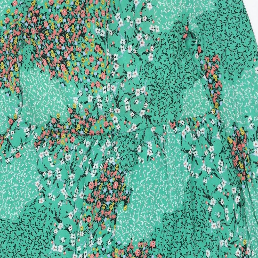 Marks and Spencer Womens Green Floral Polyester A-Line Size 6 V-Neck Pullover