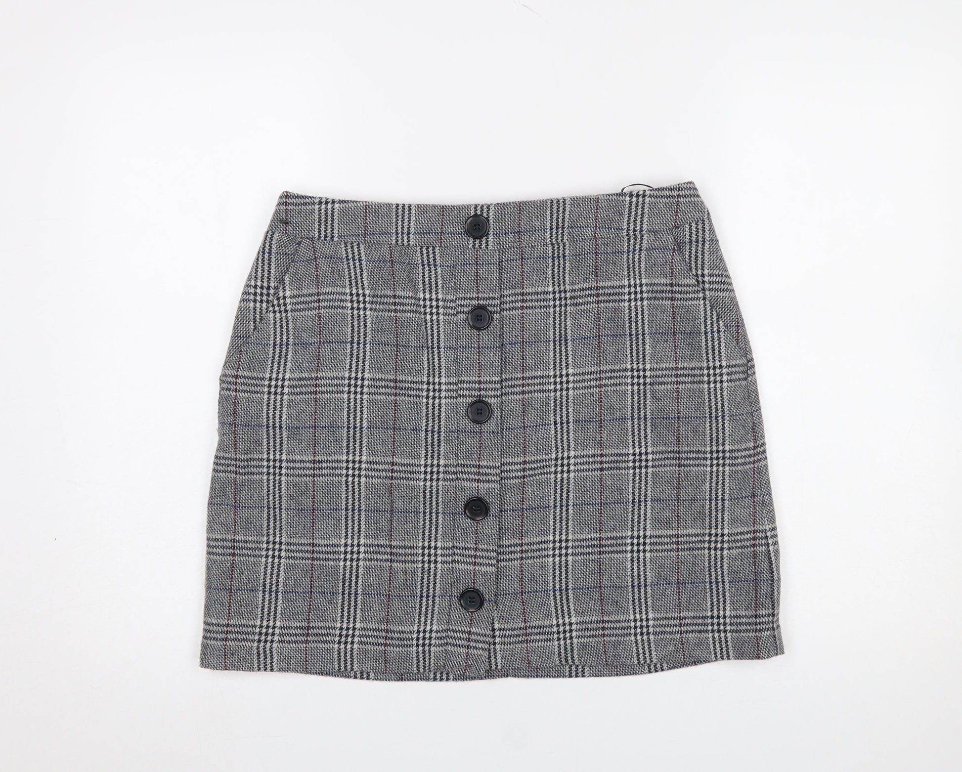 Marks and Spencer Women's Grey Check Button Front A-Line Skirt Size 12