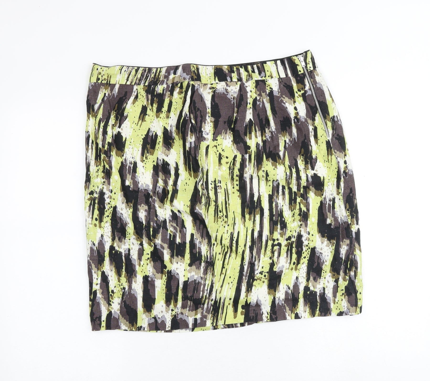 Marks and Spencer Womens Multicoloured Geometric Cotton A-Line Skirt Size 16 Zip