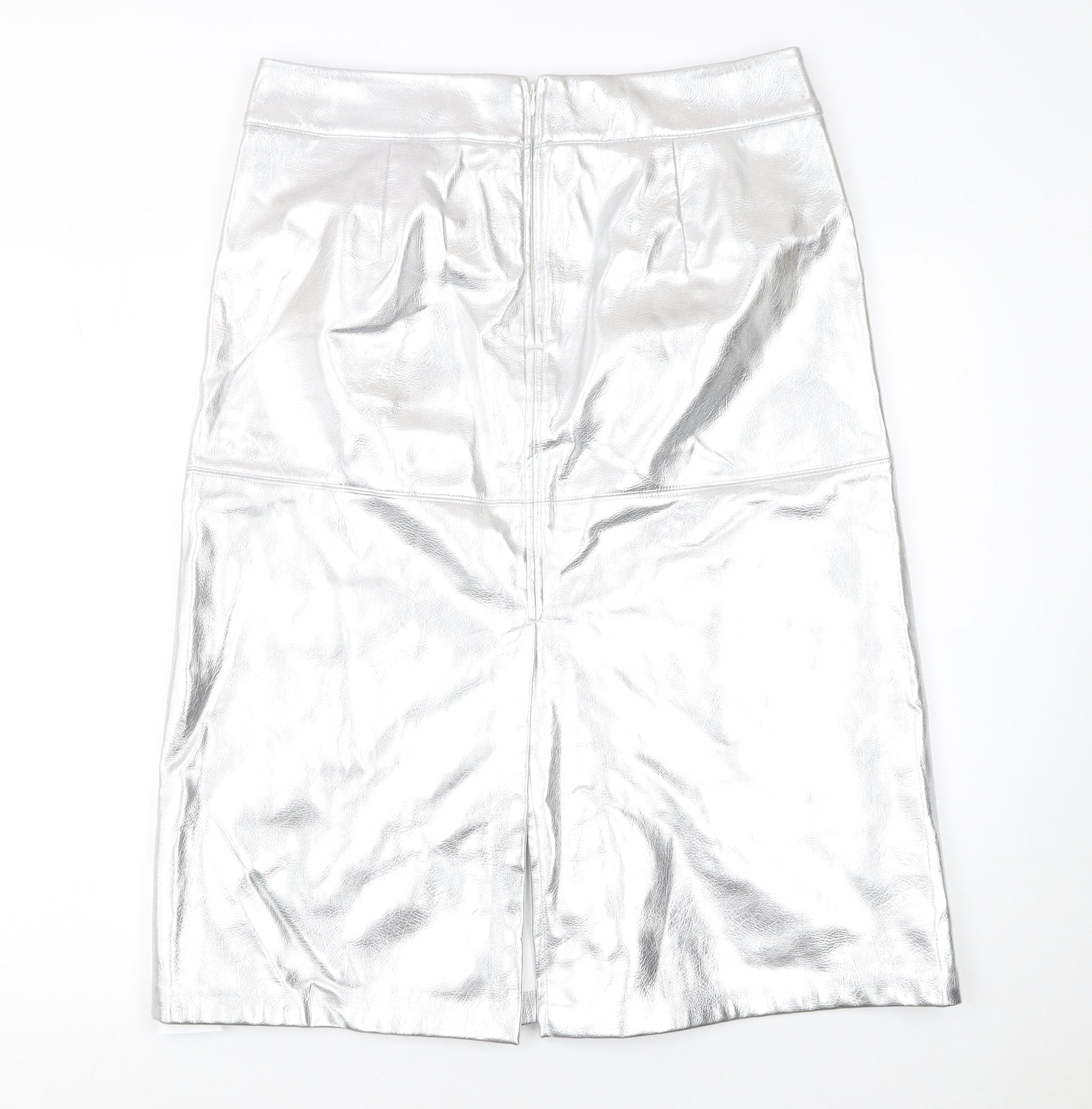 Marks and Spencer Womens Silver Faux Leather Pencil Skirt Size 16