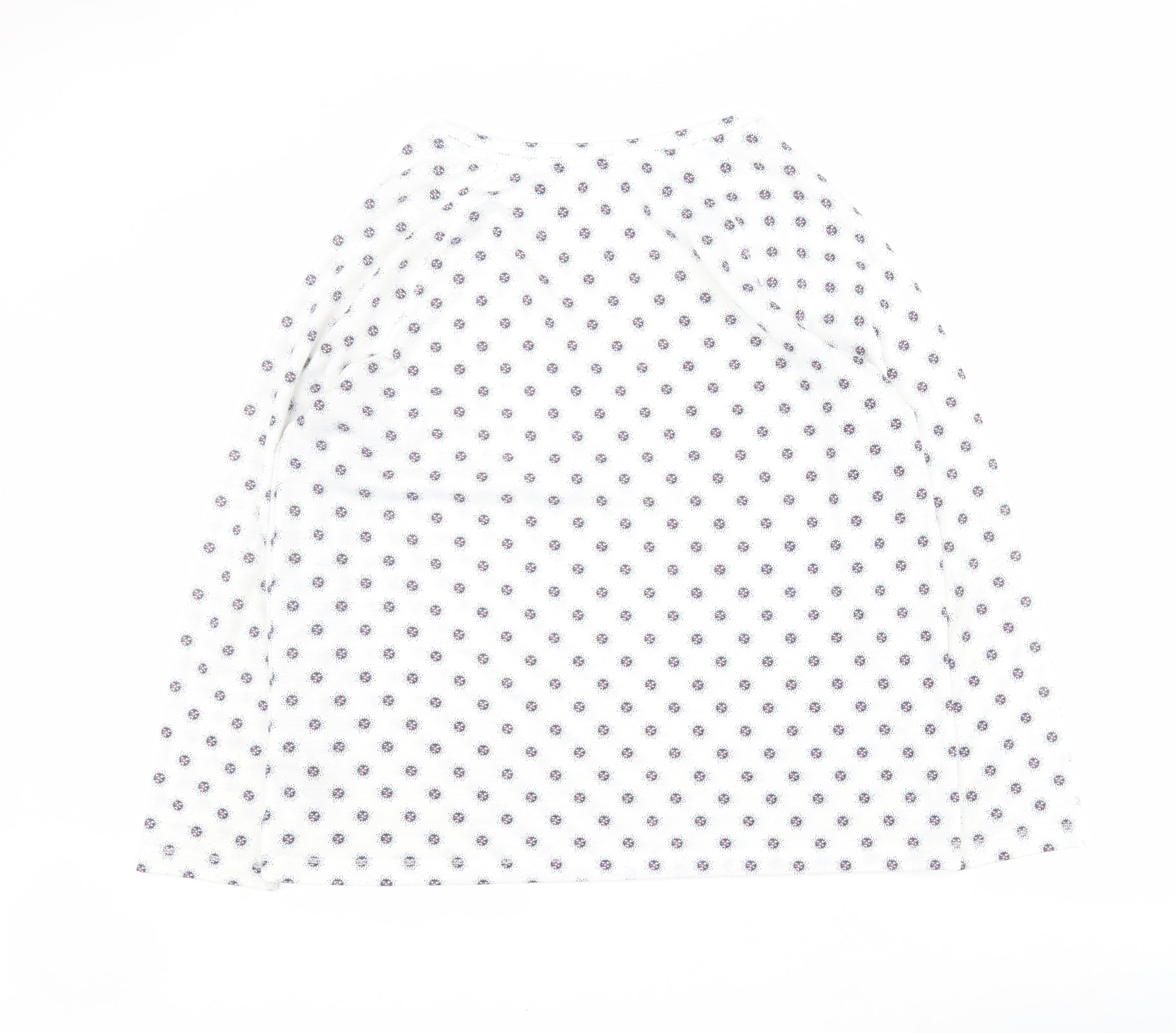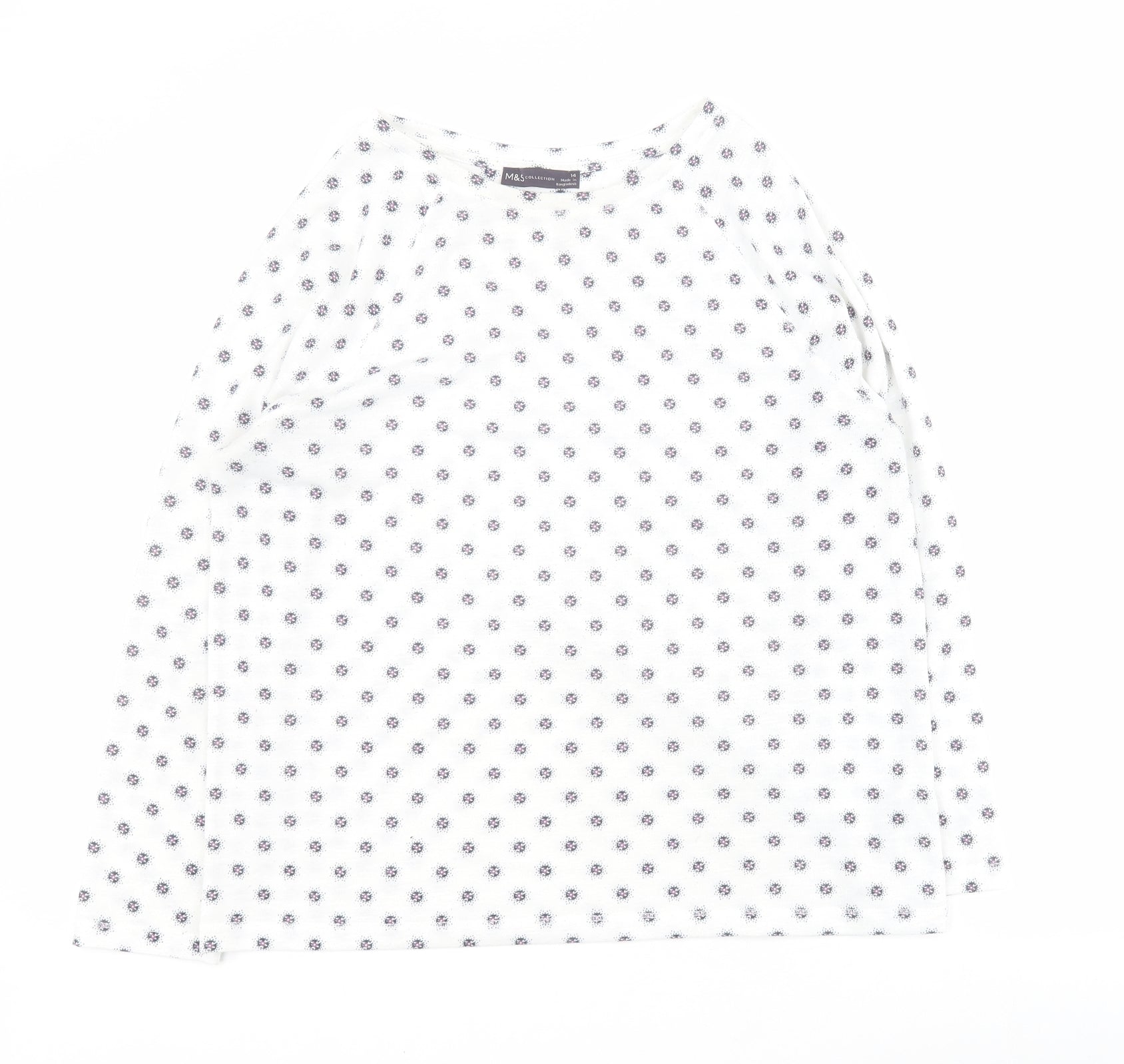 Marks and Spencer Womens White Geometric Polyester Basic Polo Size 14 Round Neck