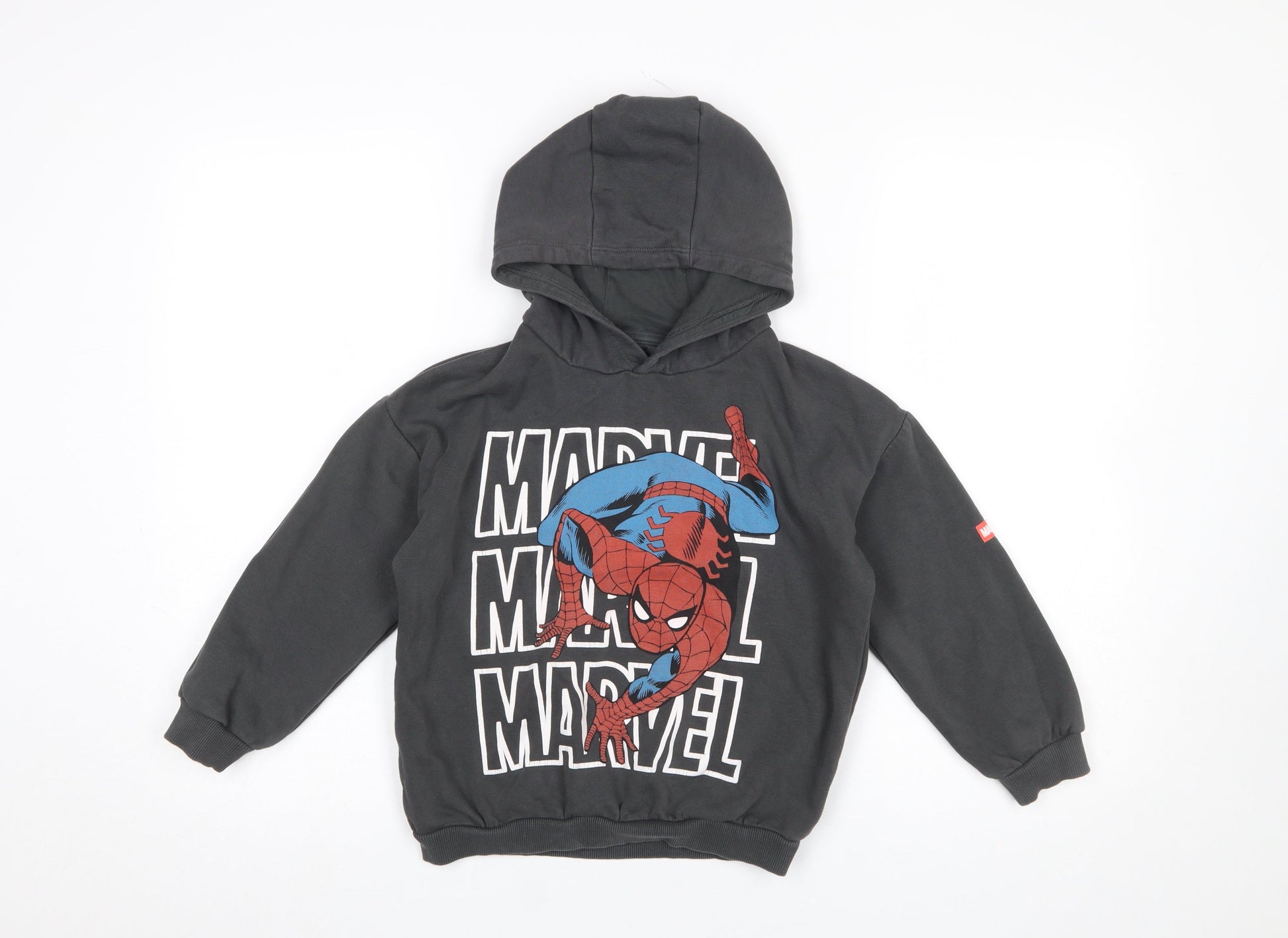 Marvel Spider-Man Boys Black Hoodie 6-7 Years Pullover Graphic Cotton Blend