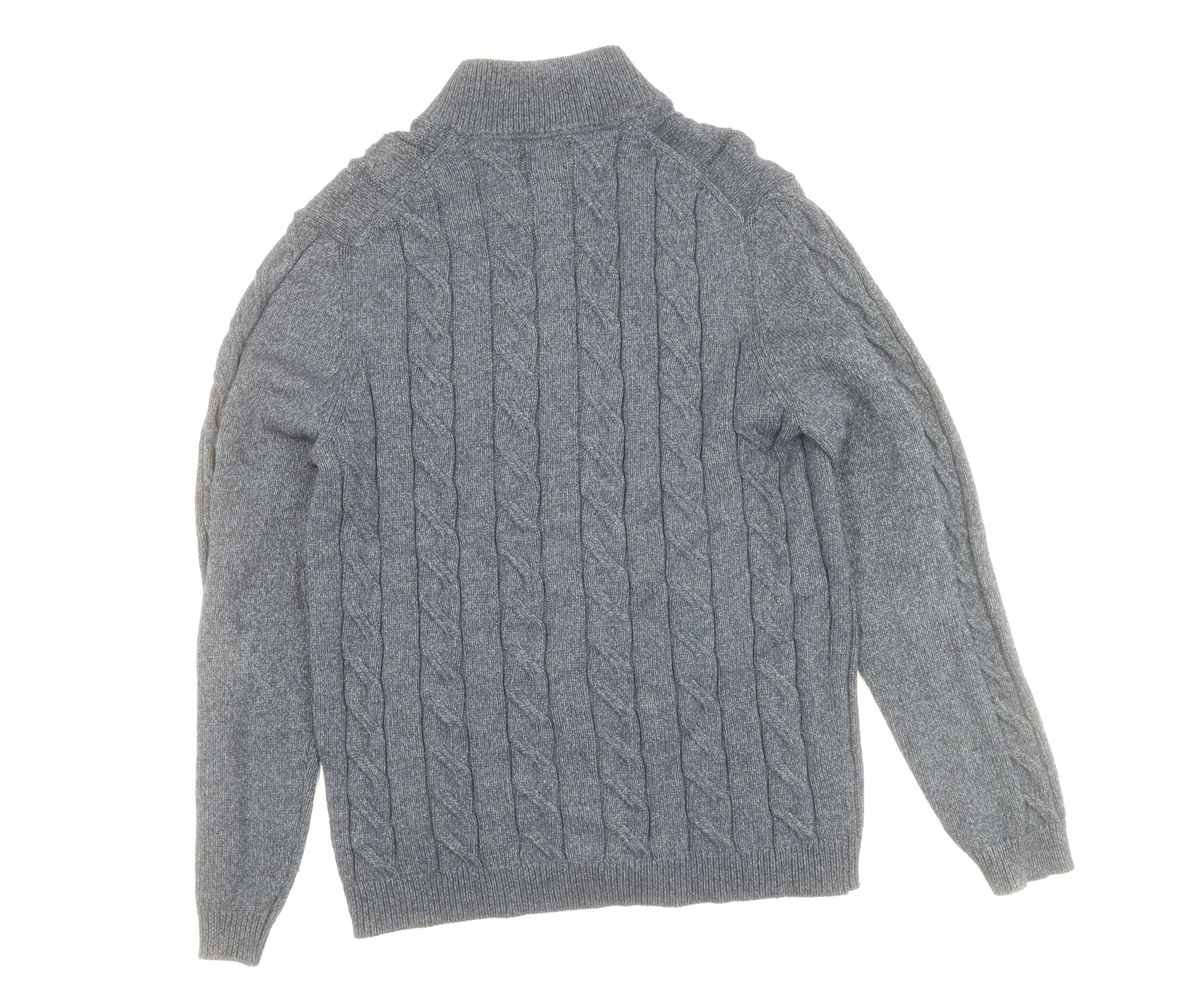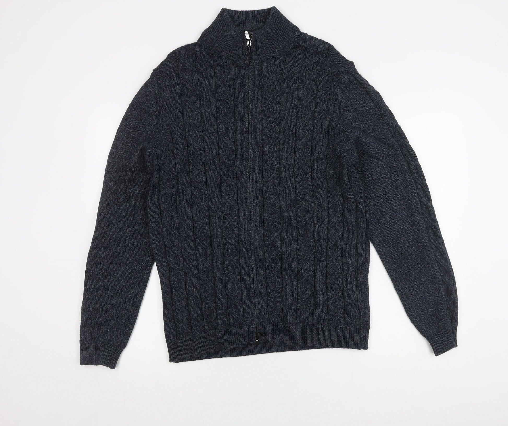 Massimo Dutti Men's Grey XL Cable-Knit Full Zip Jumper