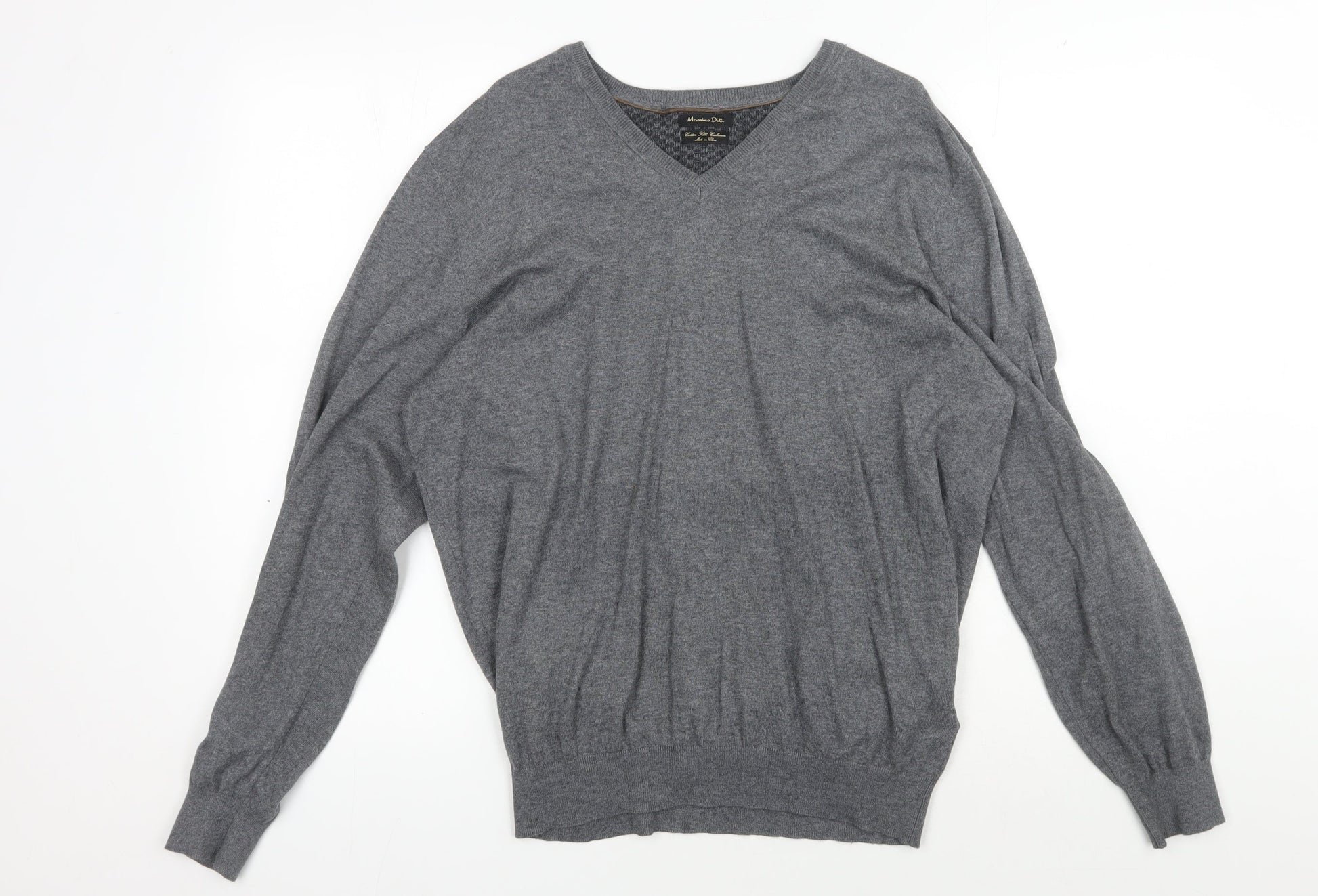 Massimo Dutti Men's Grey XL V-Neck Pullover Jumper