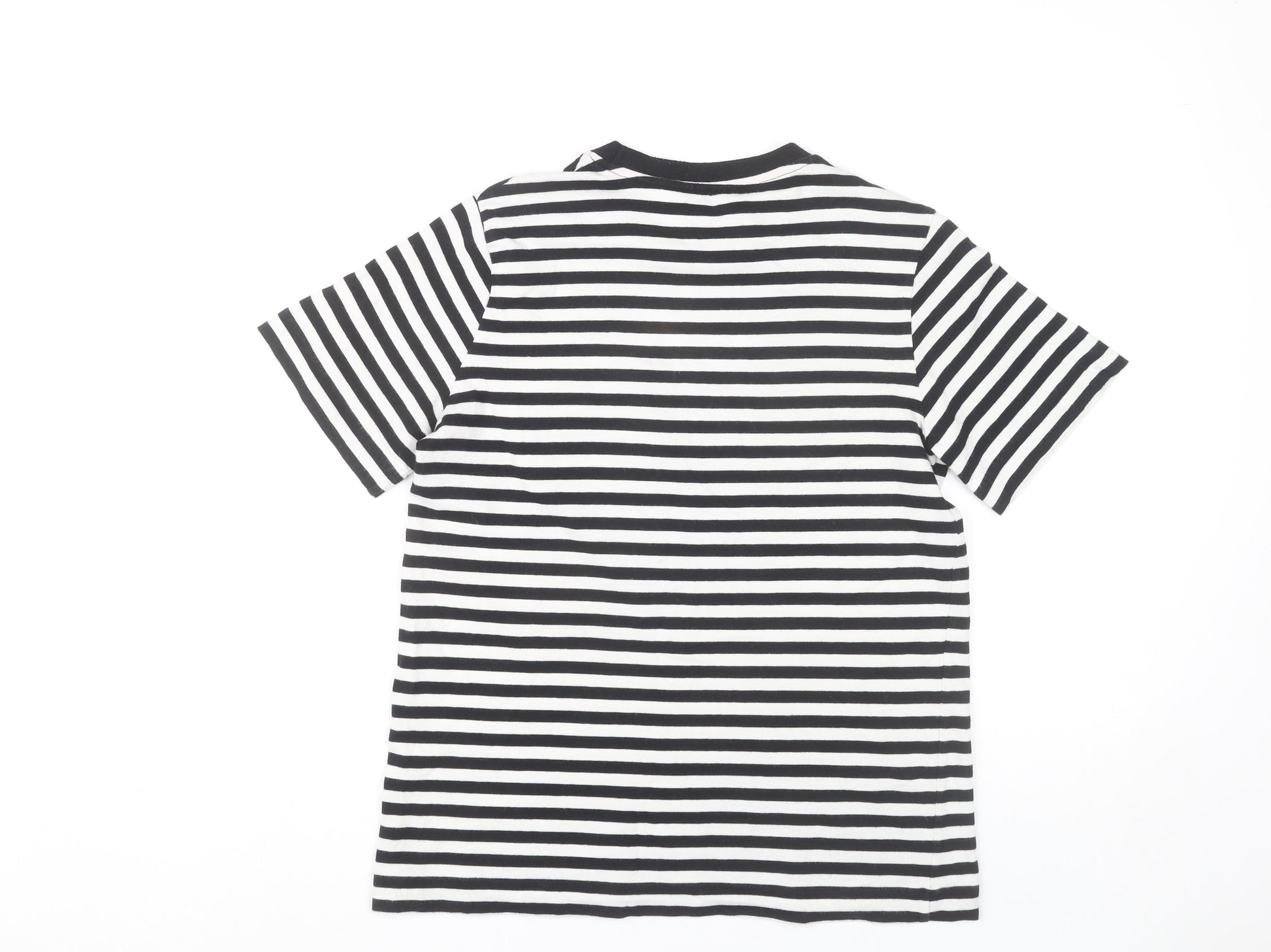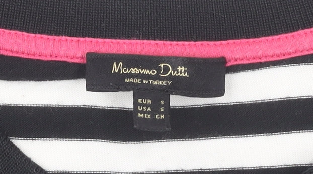Massimo Dutti Women’s Black Striped Cotton T-Shirt S Crew Neck