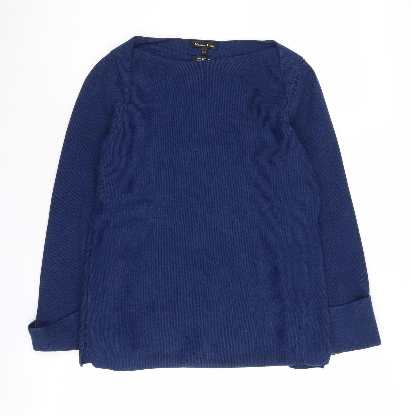 Massimo Dutti Women's Blue Boat Neck Jumper 2XS