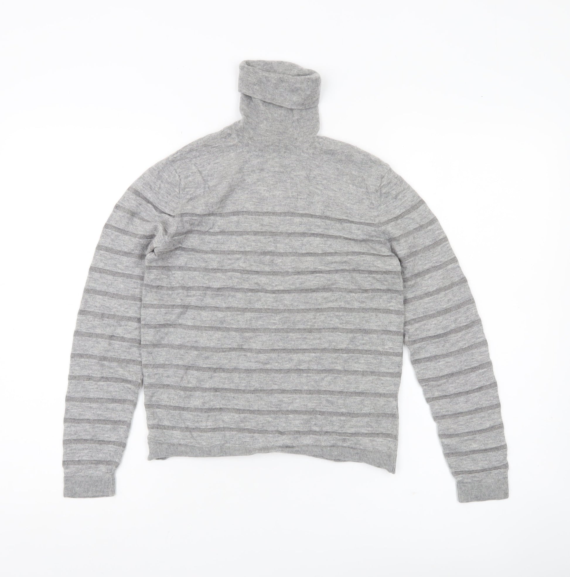 Massimo Dutti Womens Grey Roll Neck Wool Blend Striped Jumper Size 8