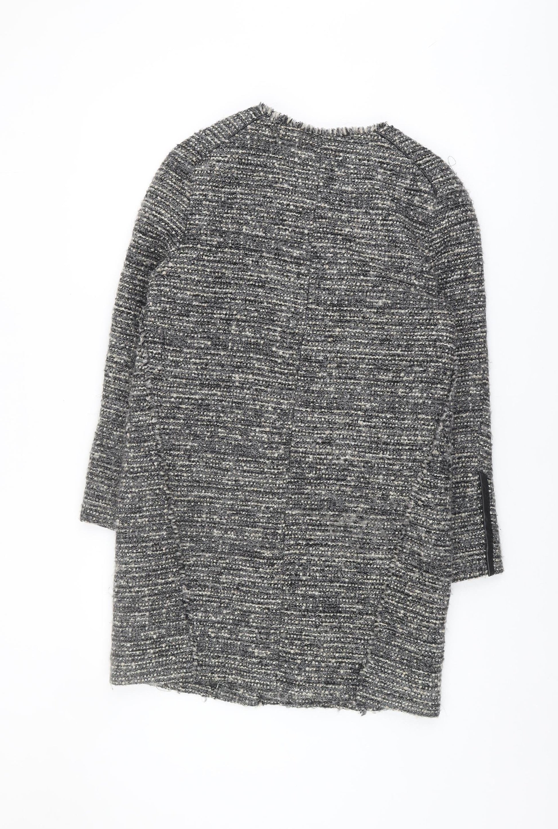 Massimo Dutti Women's Grey Tweed Mid-Length Coat Size 10