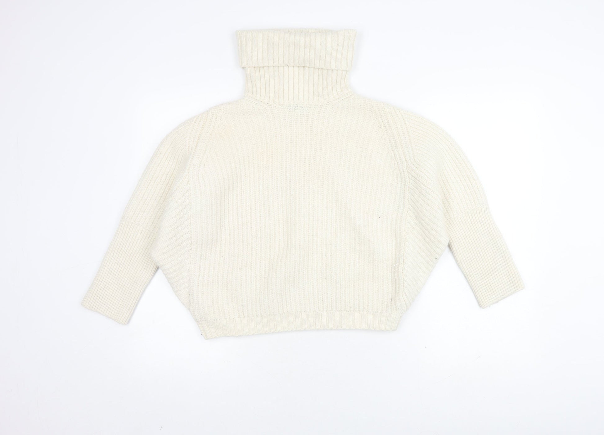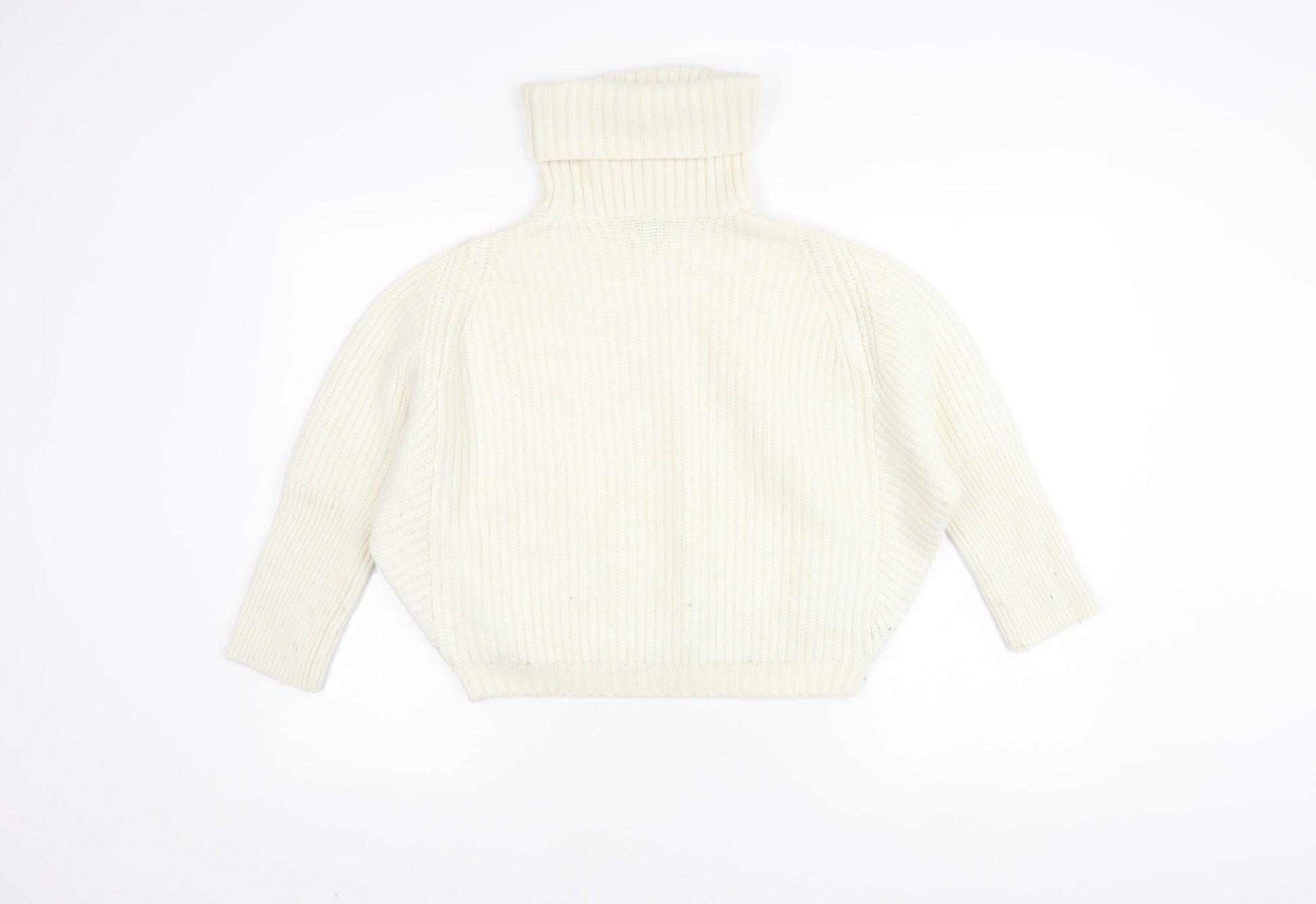 Massimo Dutti Women's Ivory Roll Neck Jumper XS