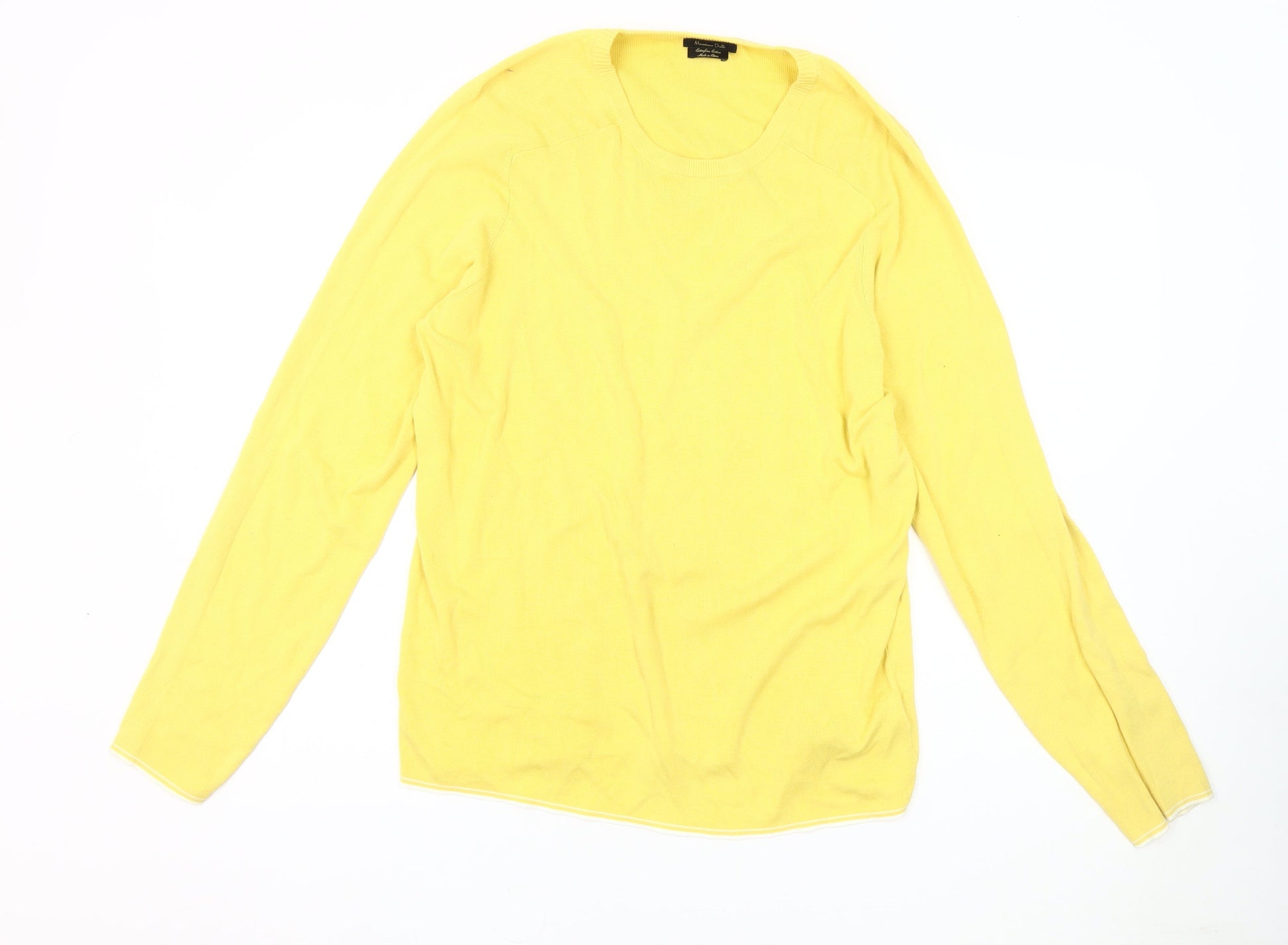 Massimo Dutti Women's Yellow Cotton Pullover Jumper L