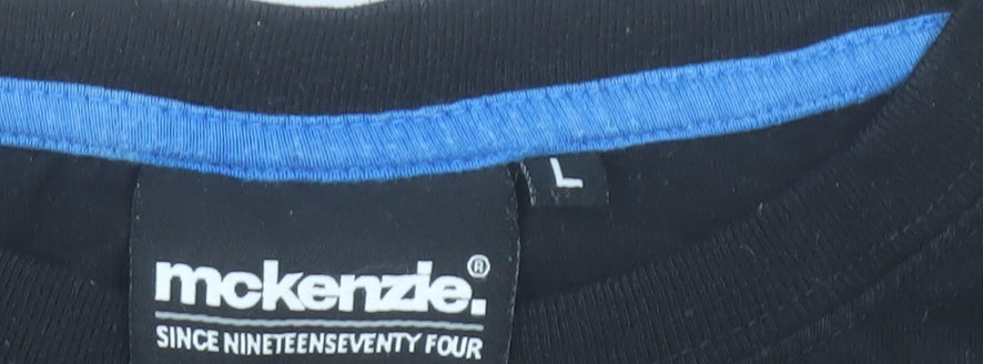 McKenzie Men Black L Cotton Crew Neck Graphic Print T-Shirt