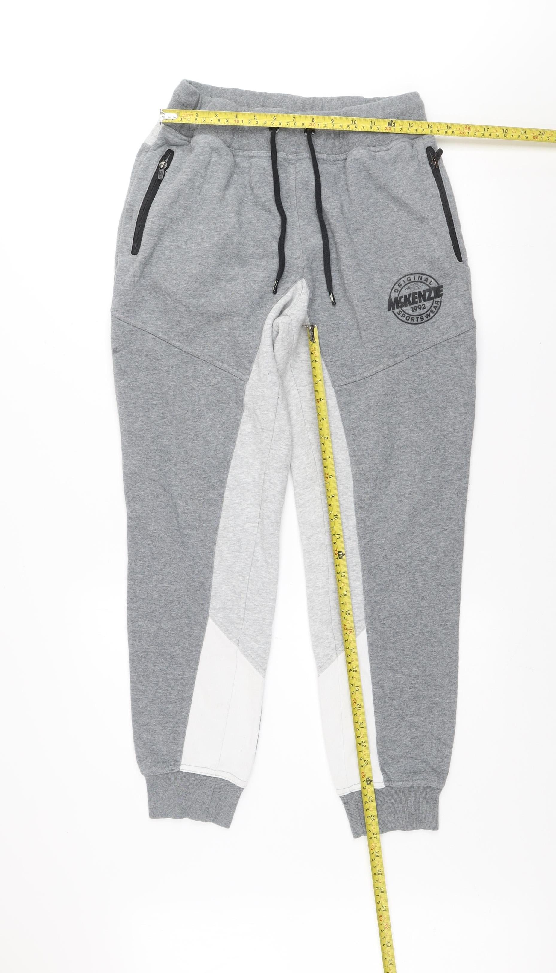 McKenzie Men’s Grey Jogger Sweatpants L Fleece Tapered Activewear