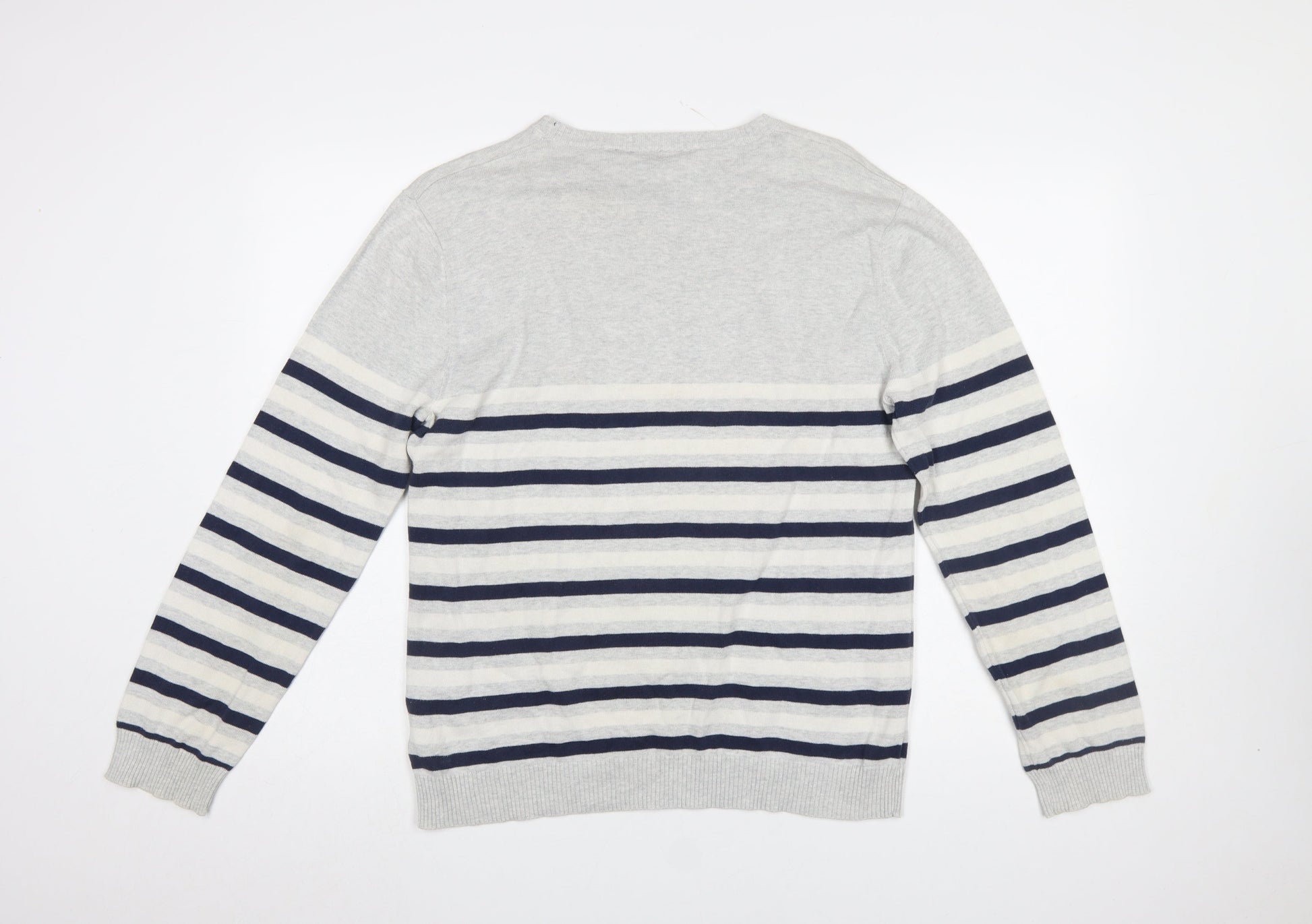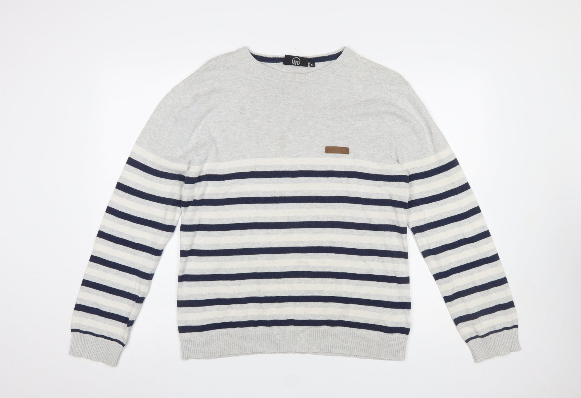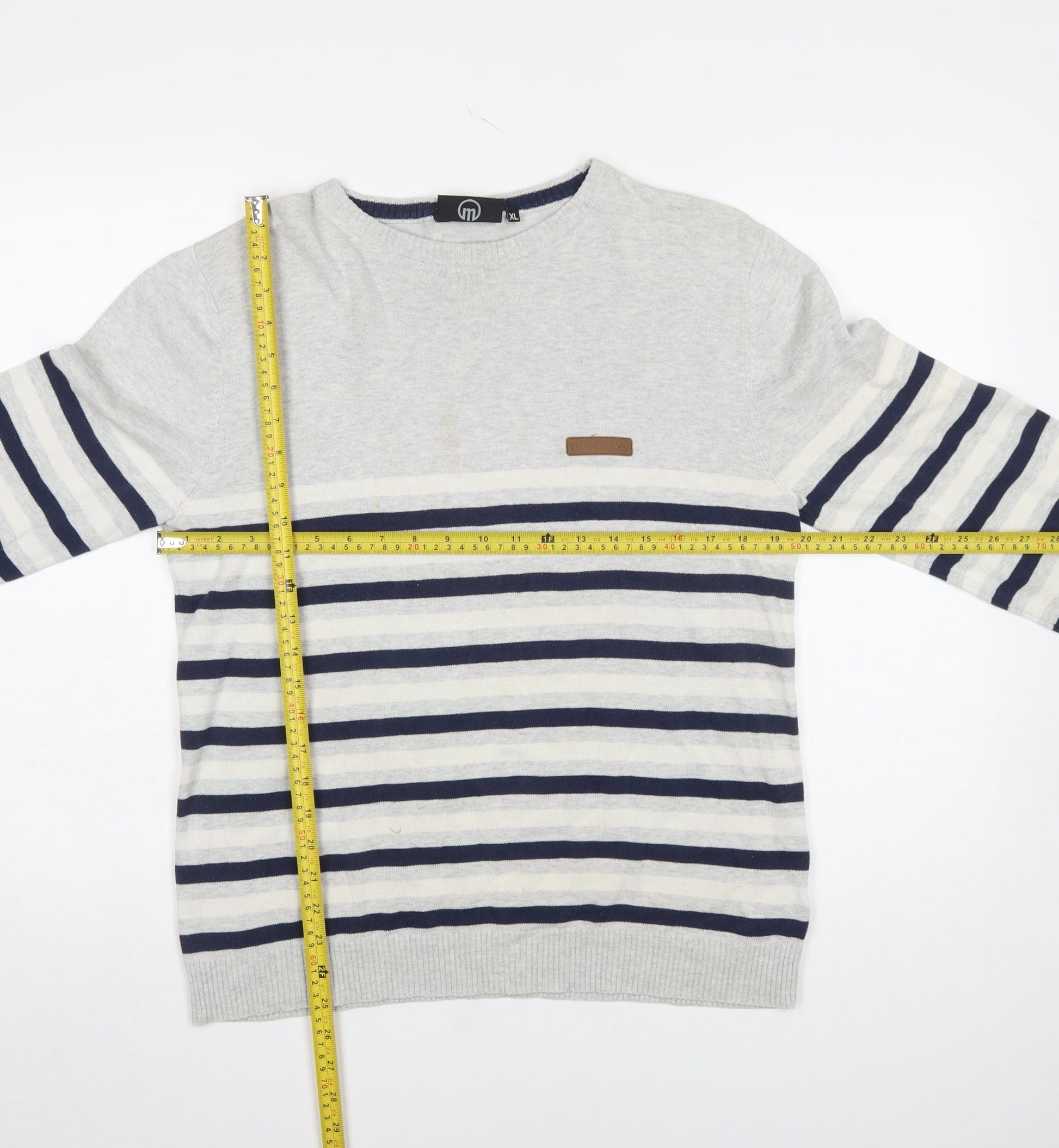 McKenzie Men’s Grey Striped Crew Neck Cotton Pullover Jumper XL