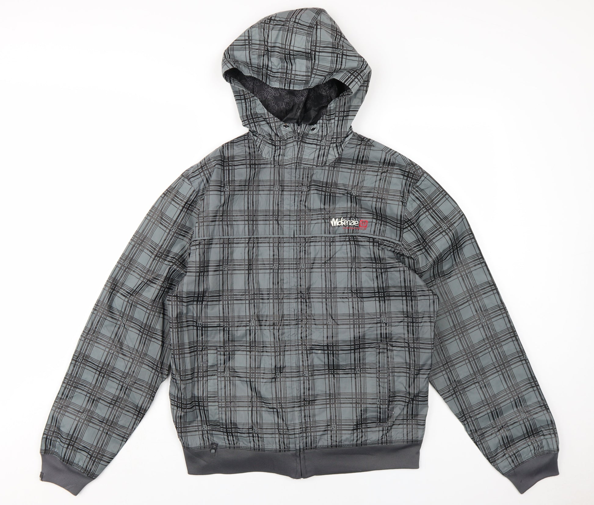 McKenzie Men's Grey Bomber Jacket, Medium, Hooded Check Style