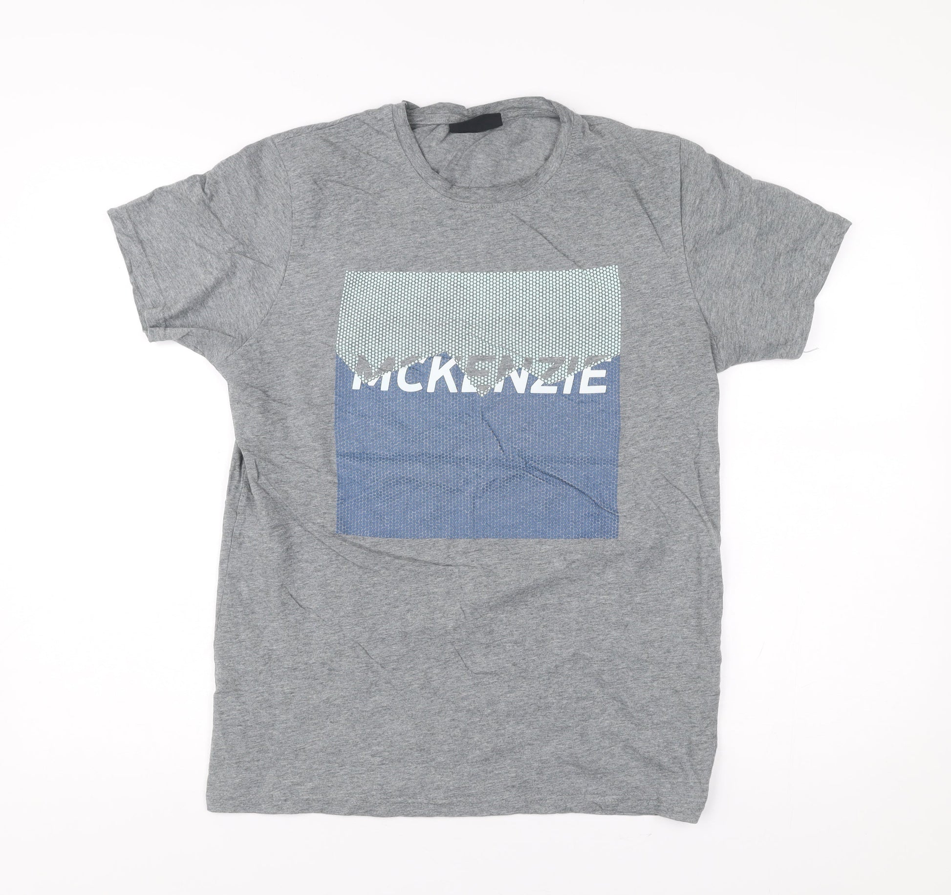 McKenzie Mens Grey Graphic Print T-Shirt Size M Short Sleeve Cotton