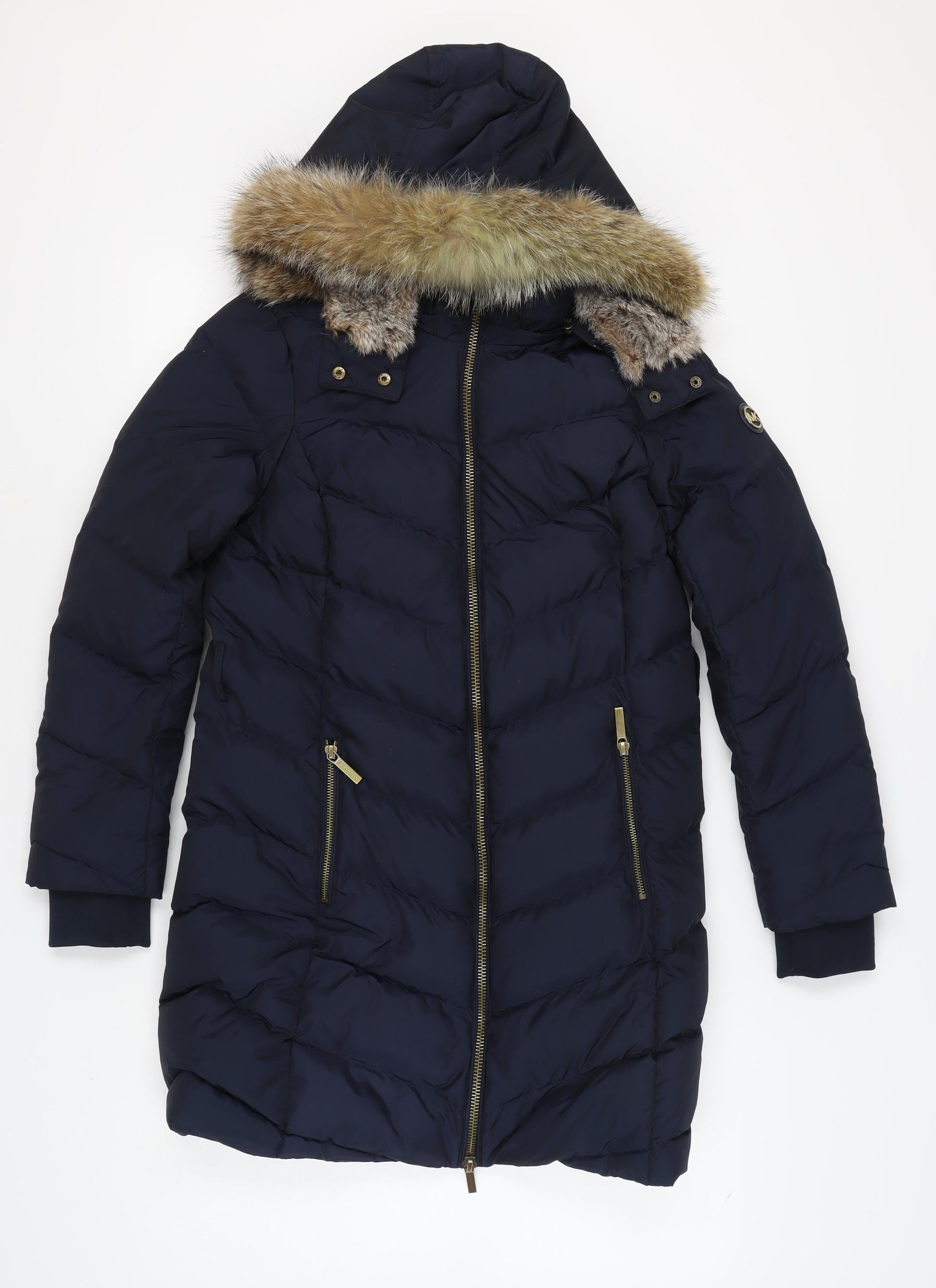Michael Kors Women's Blue Puffer Jacket Fur Hood S