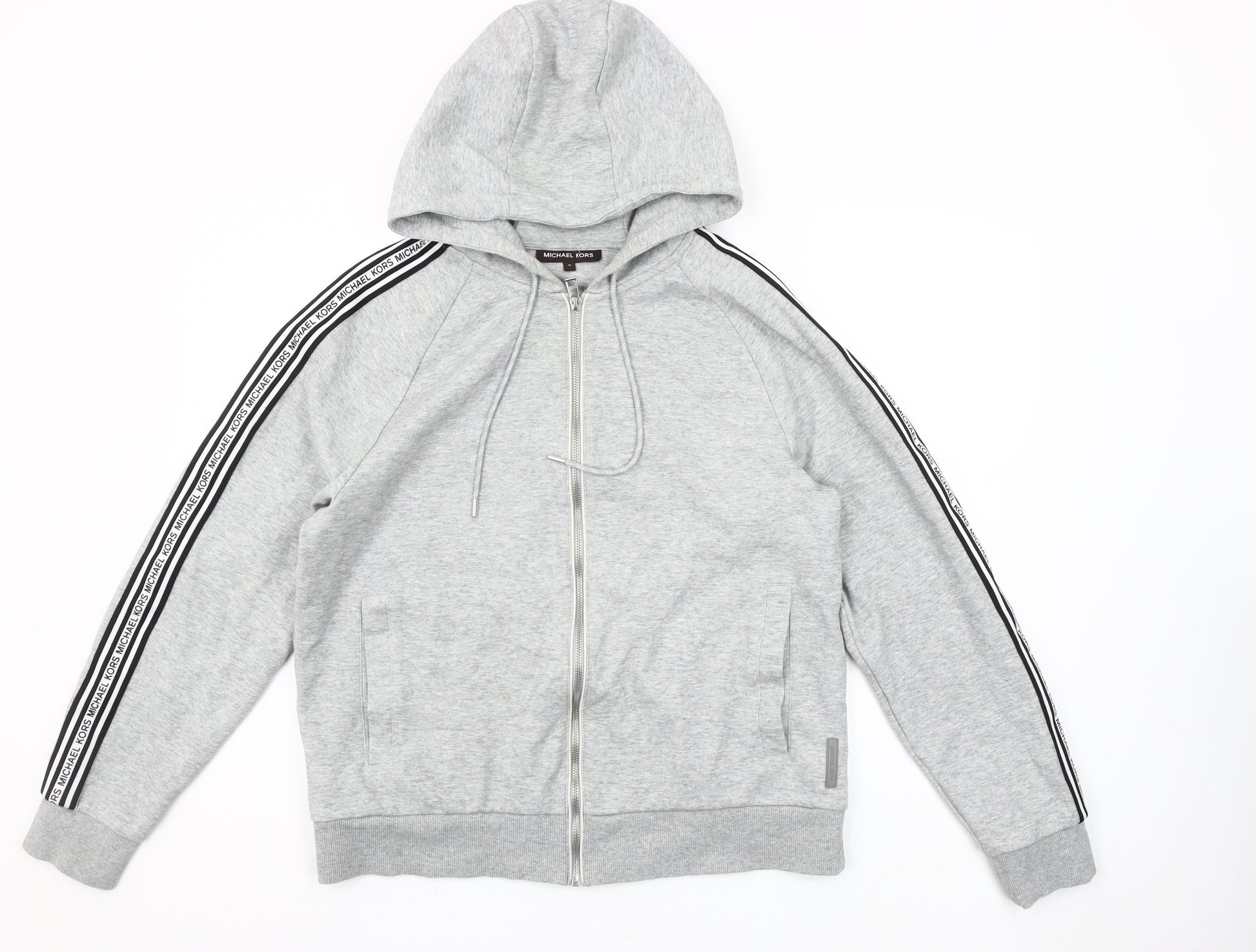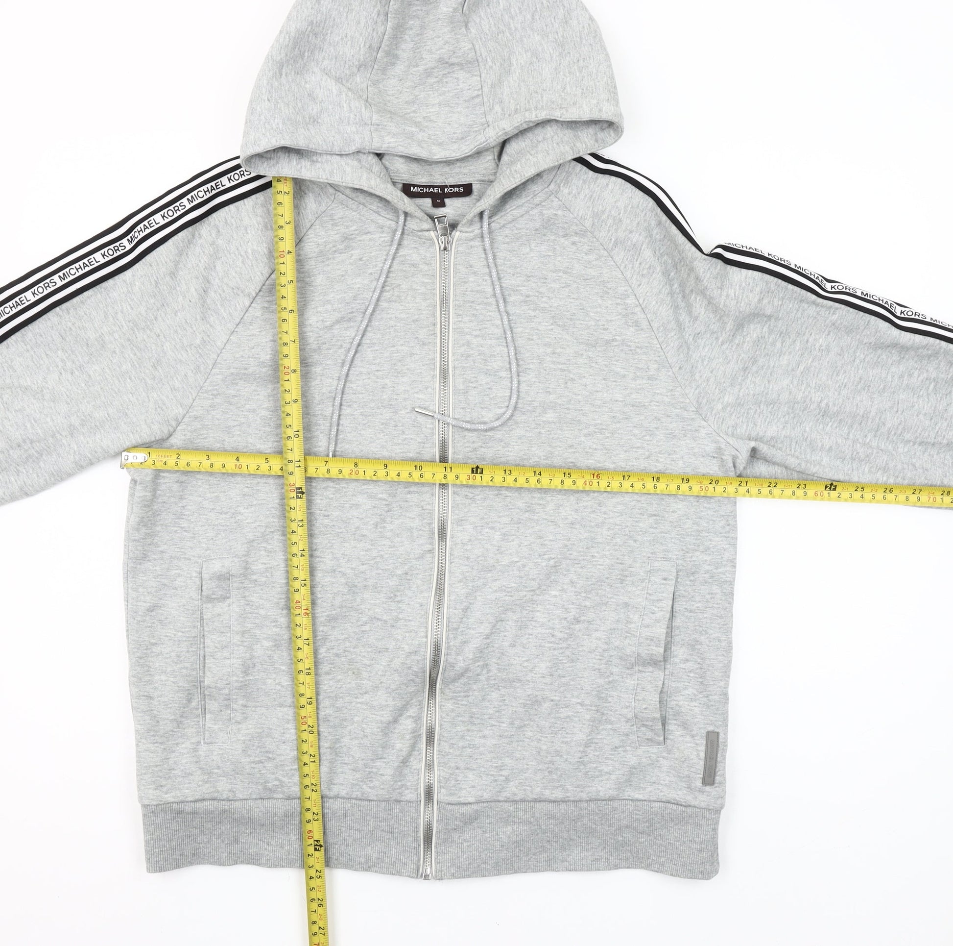 Michael Kors Womens Grey Full Zip Hoodie Medium Logo Stripe Casual