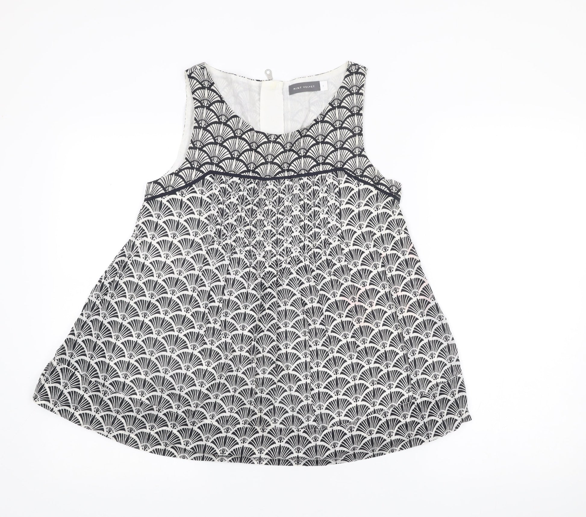 Mint Velvet Womens Black Geometric Sleeveless Tunic Blouse Size 8