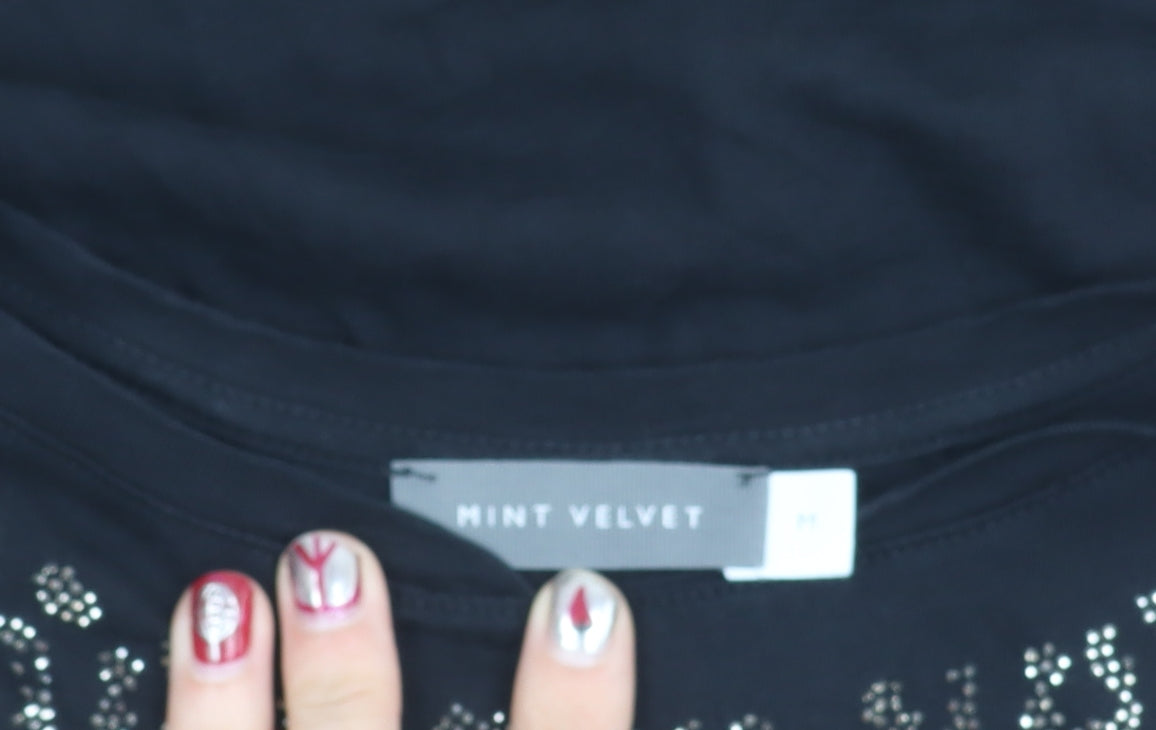 Mint Velvet Womens Black Sleeveless Rhinestone T-Shirt Size M