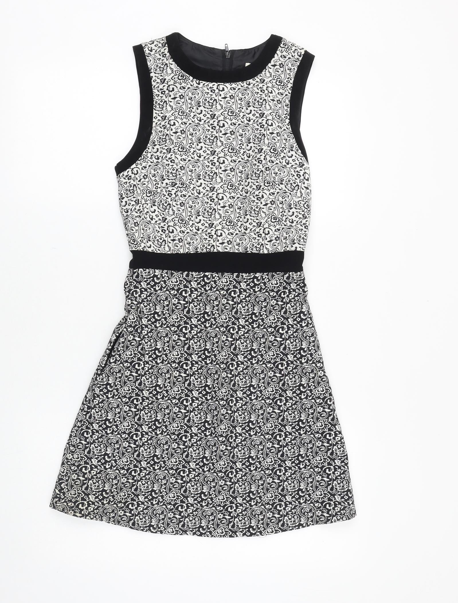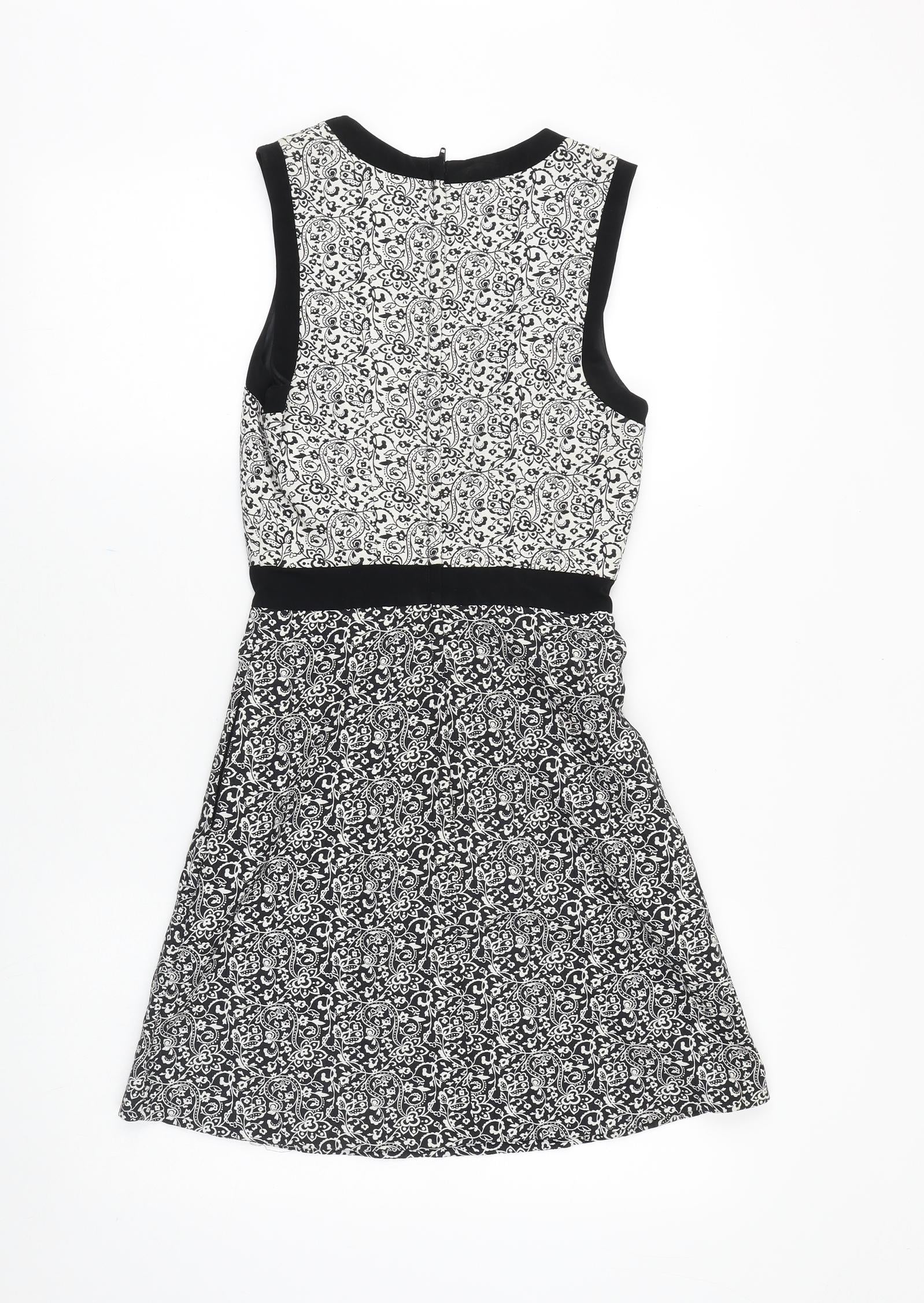 Miss Selfridge Womens Black Floral Polyester A-Line Size 4 Scoop Neck Zip