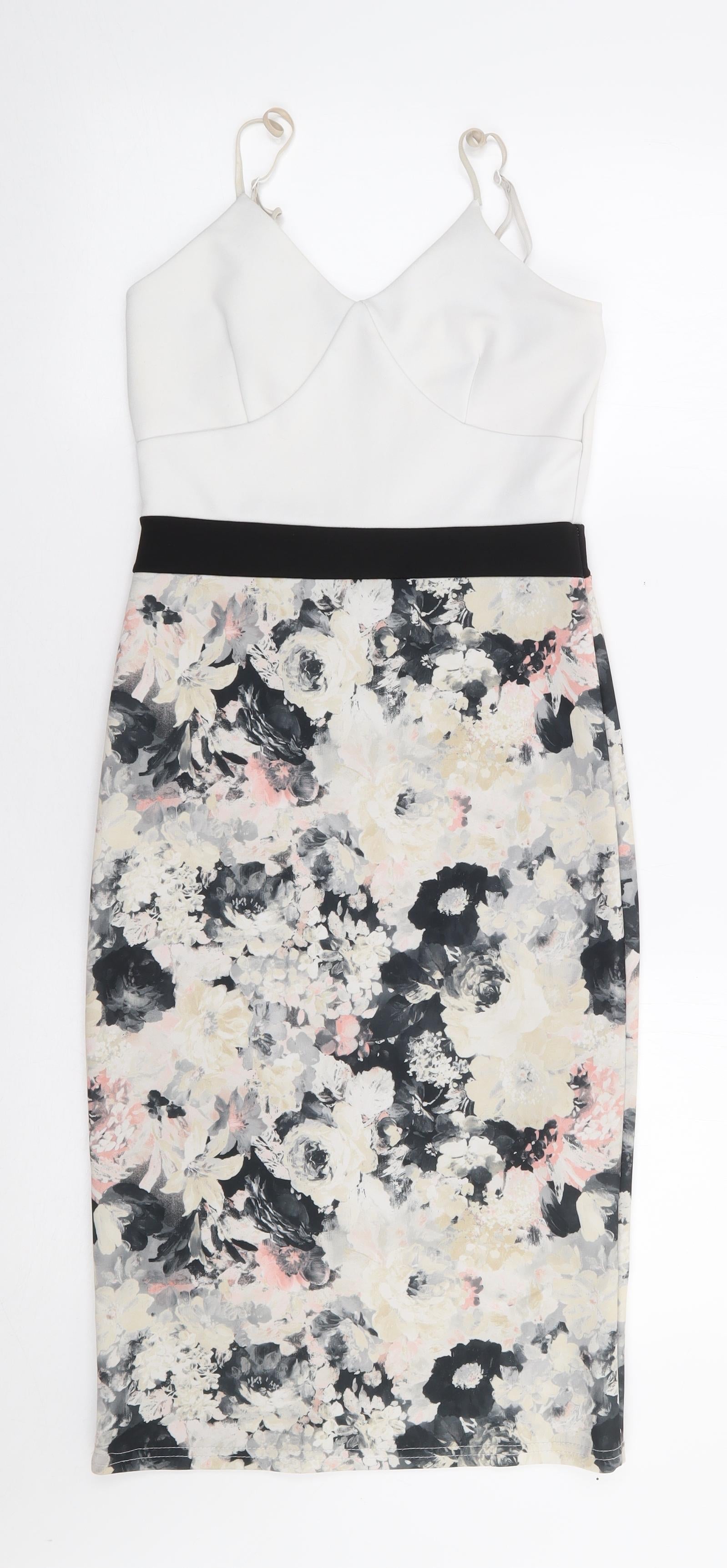 Missi London Womens Multicoloured Floral Polyester Bodycon Size 8 V-Neck Pullover