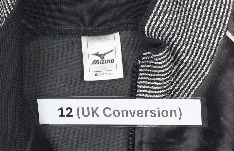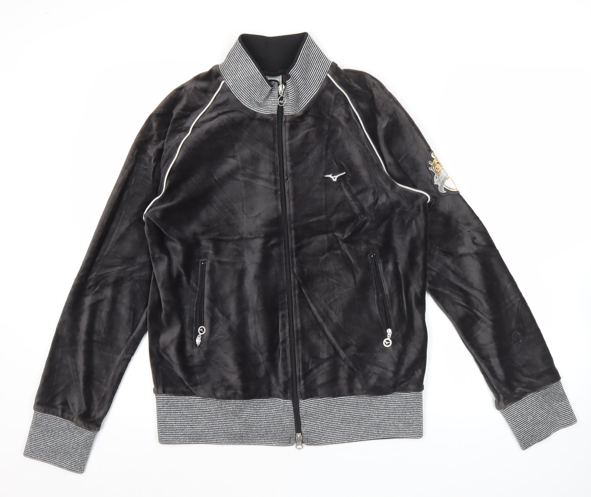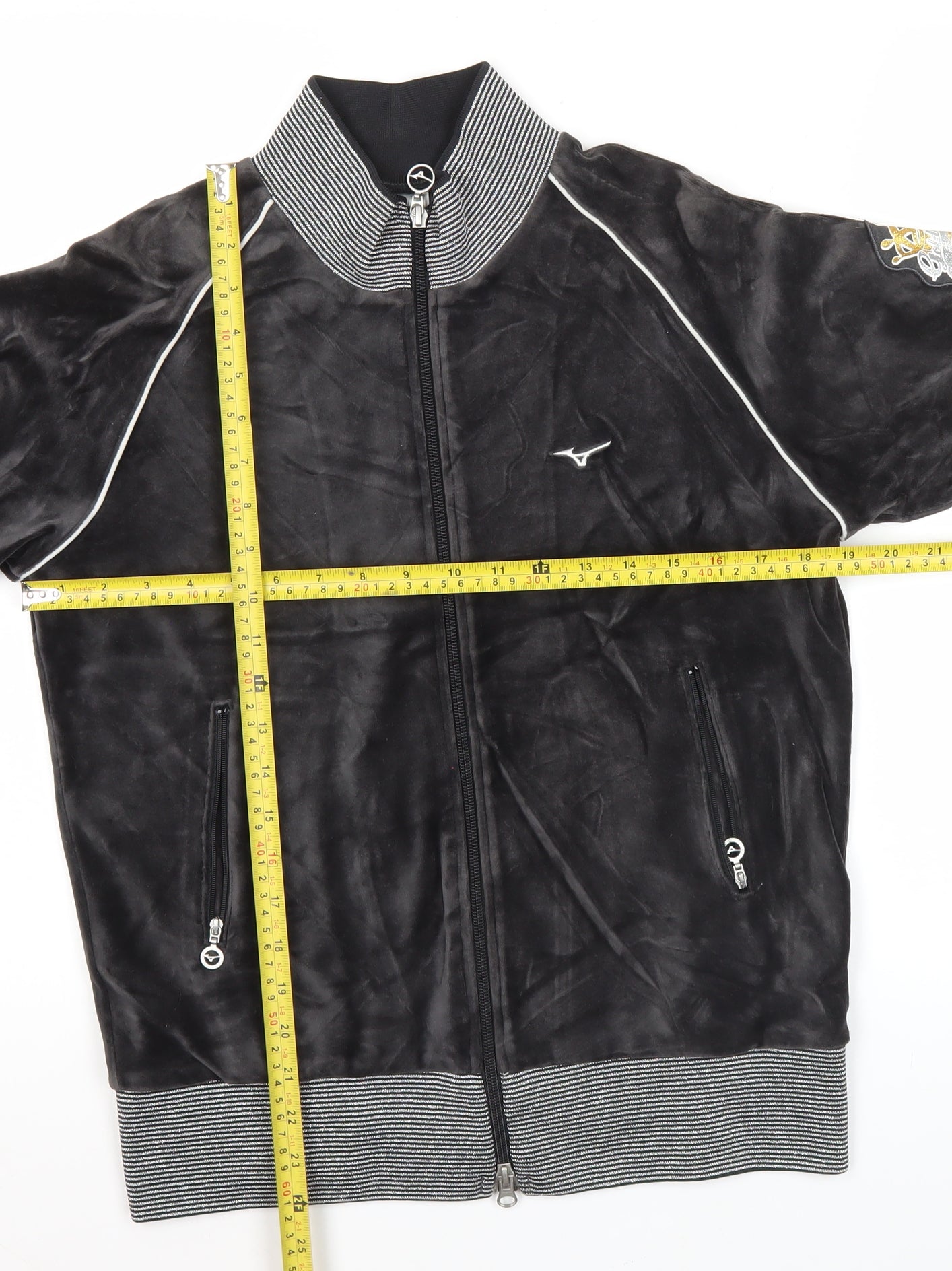 Mizuno Womens Black Size 12 Track Jacket Velour Zip Sportswear