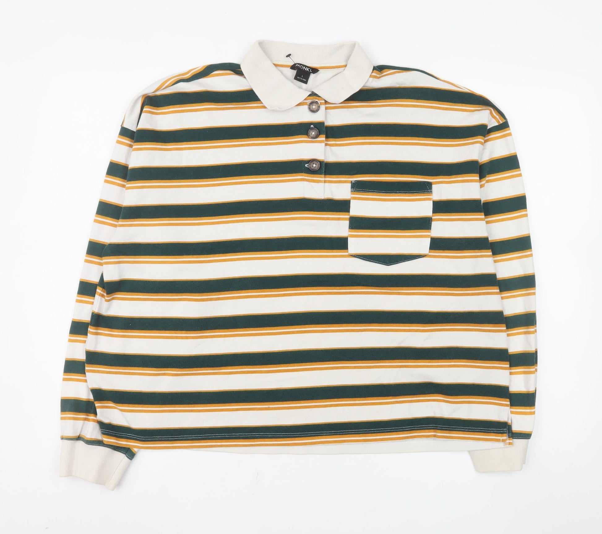 Monki Women’s Multicoloured Striped Collared Long Sleeve Polo Top L