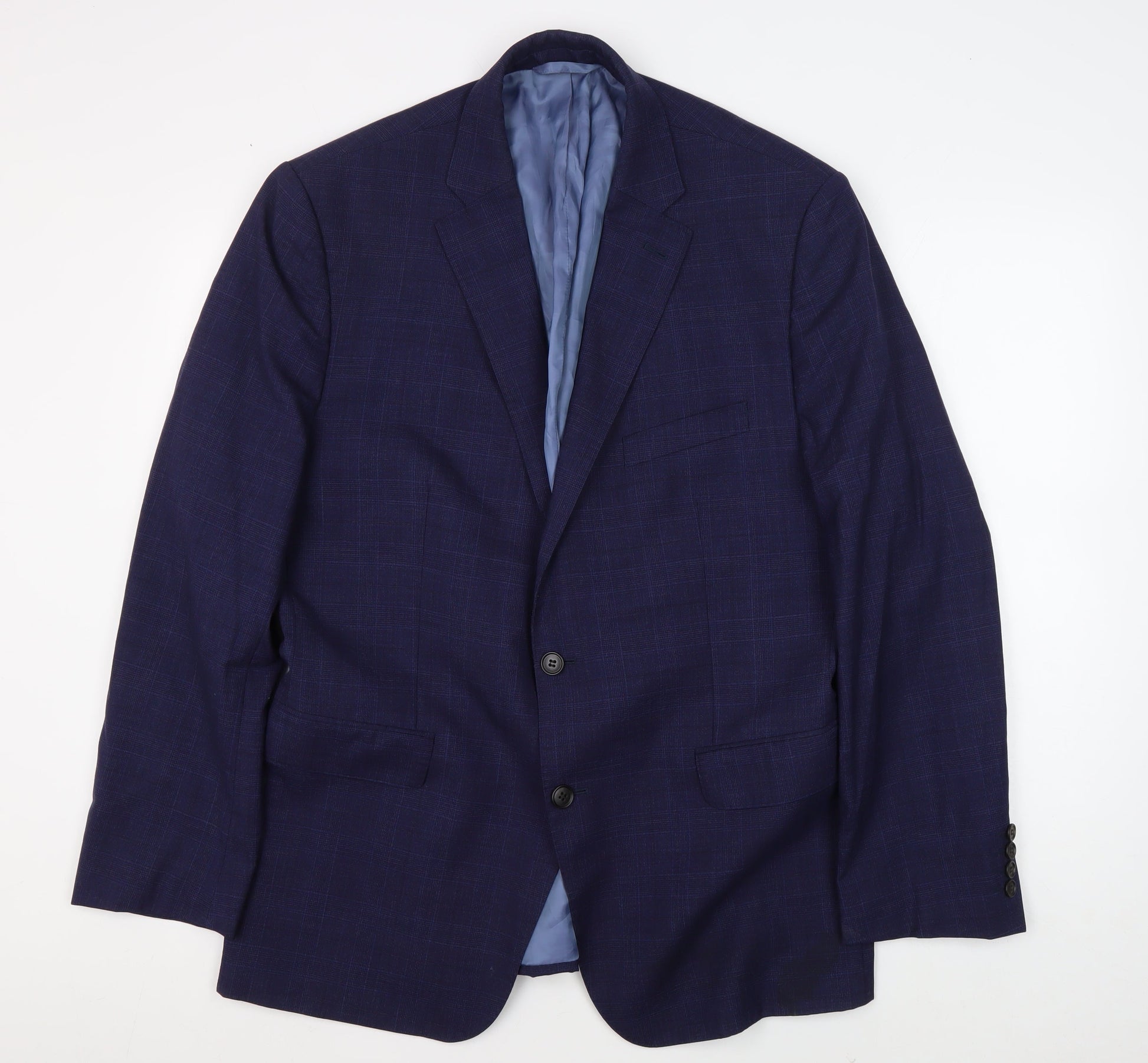 Moss 1851 Men's Blue Checked Blazer, 46 Regular