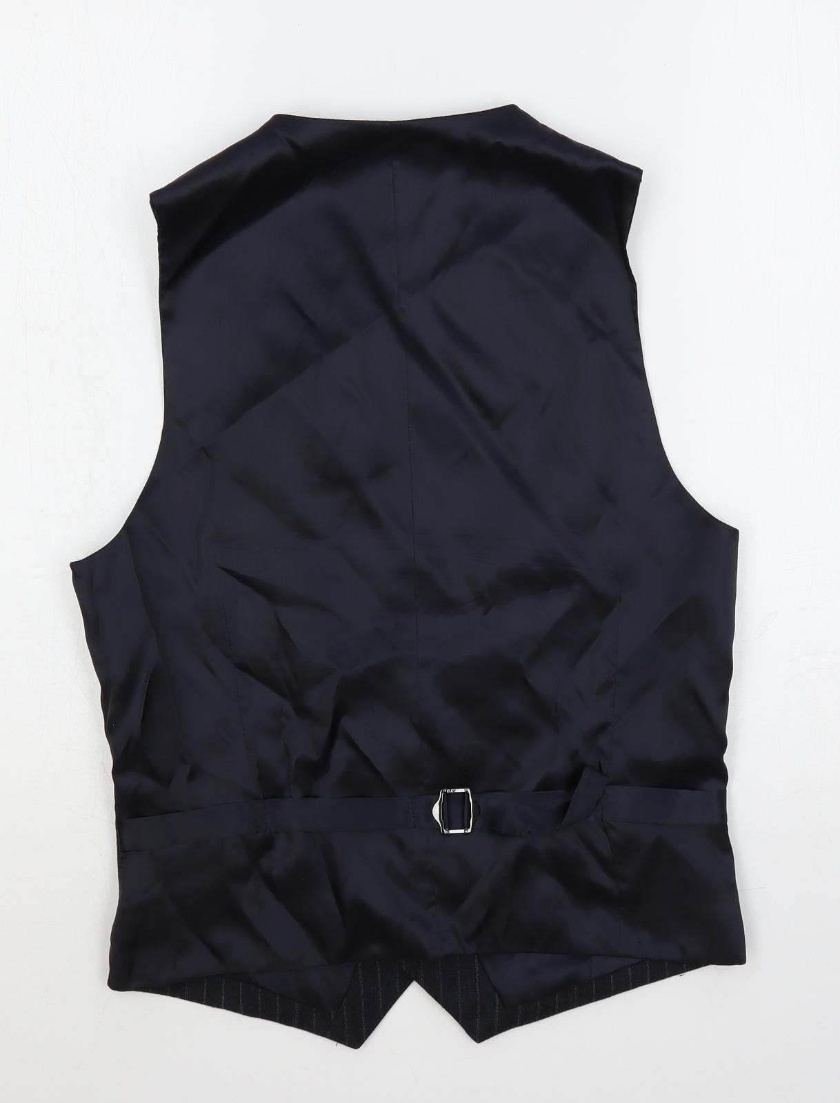 Moss 1851 Mens Blue Striped Wool Jacket Suit Waistcoat Size 34 Regular