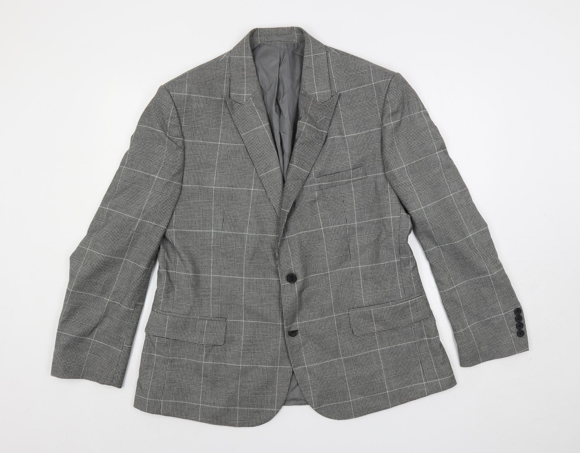 Moss 1851 Mens Grey Plaid Polyester Jacket Suit Jacket Size 44 Regular