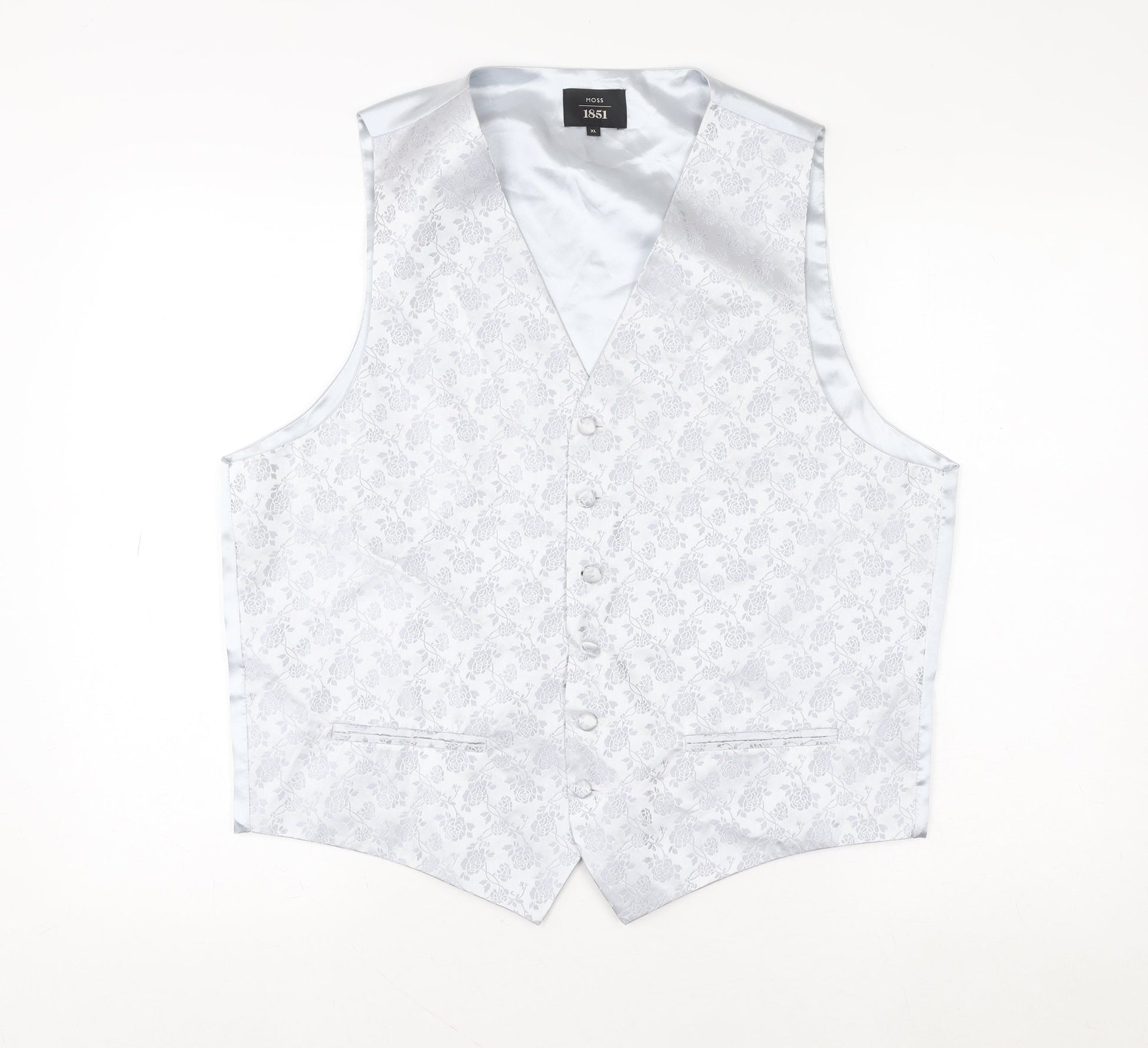 Moss 1851 Men's Silver Floral Waistcoat XL Formal Wedding