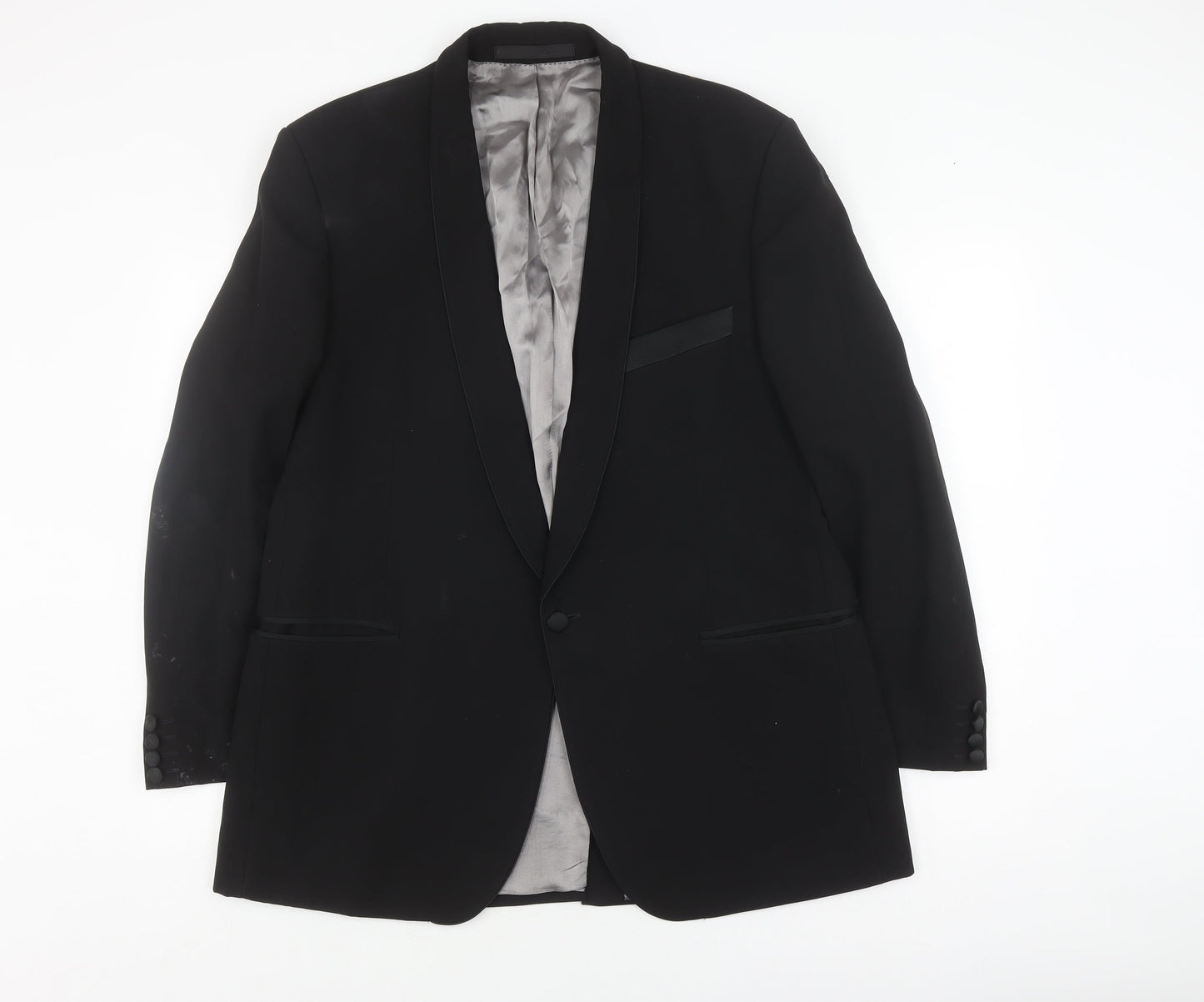 Moss Bros Men's Black Wool Blazer - Shawl Lapel, 44R Tuxedo