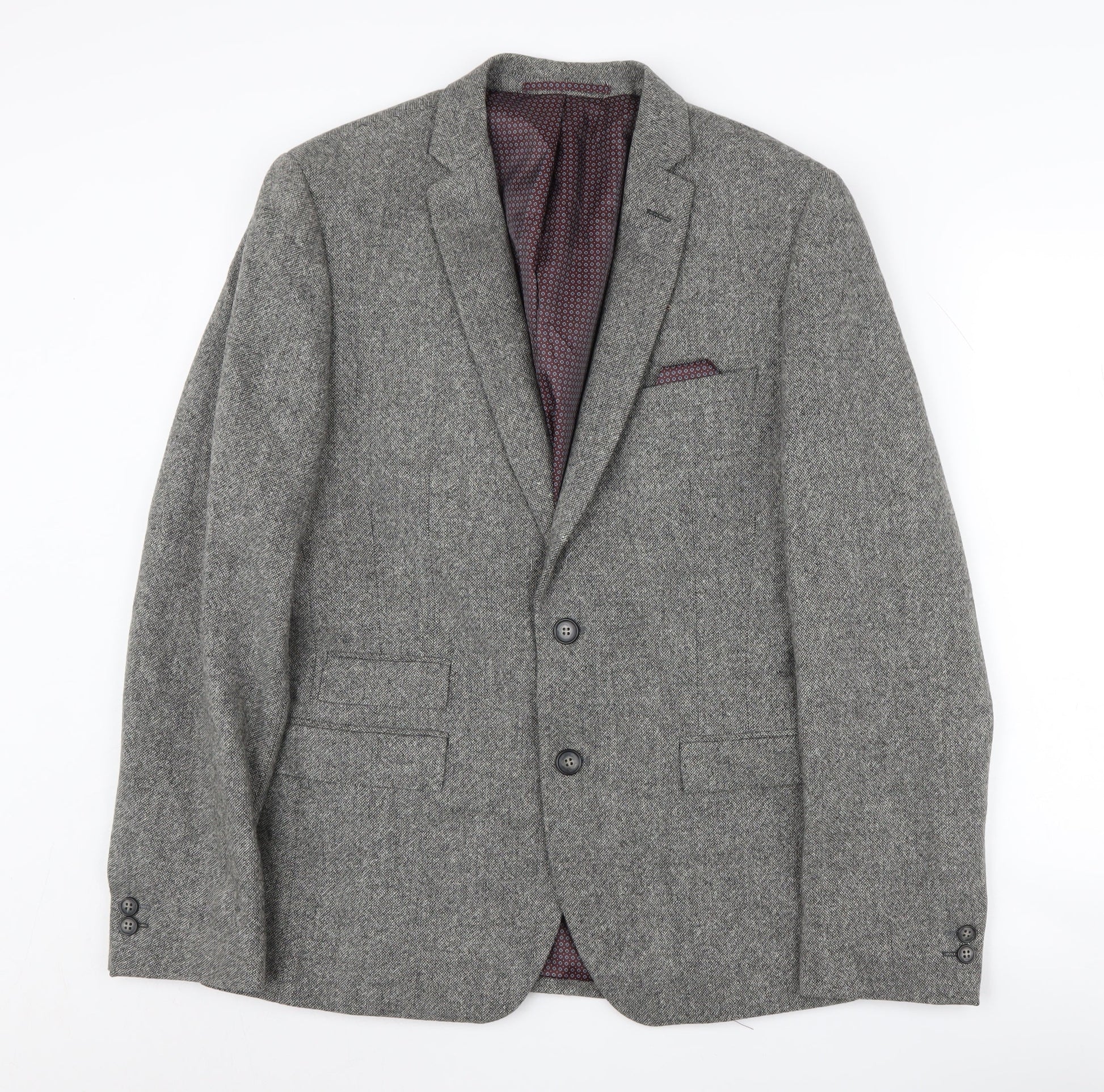 Moss London Men’s Grey Wool Blazer, Size 40, Regular Fit