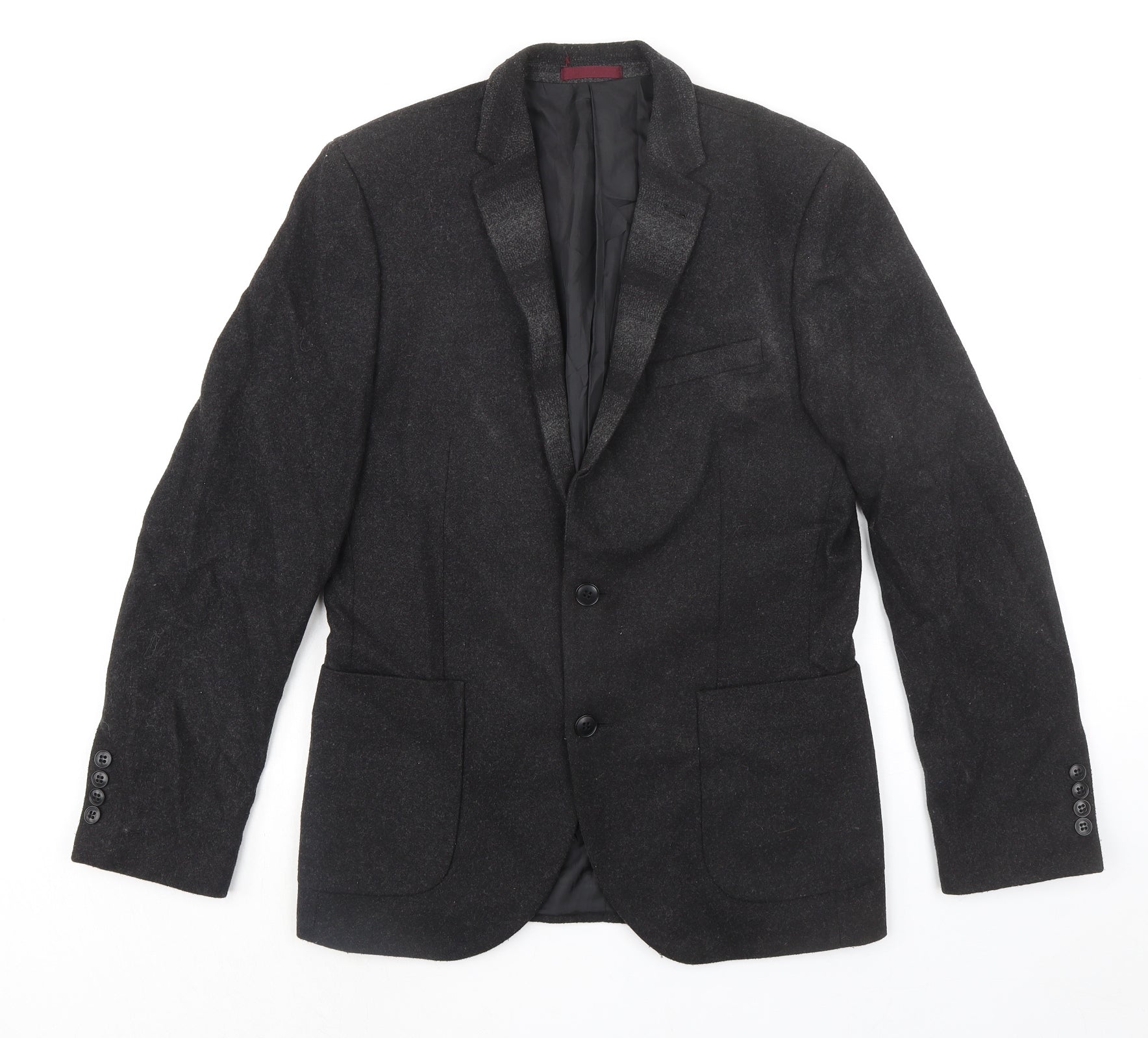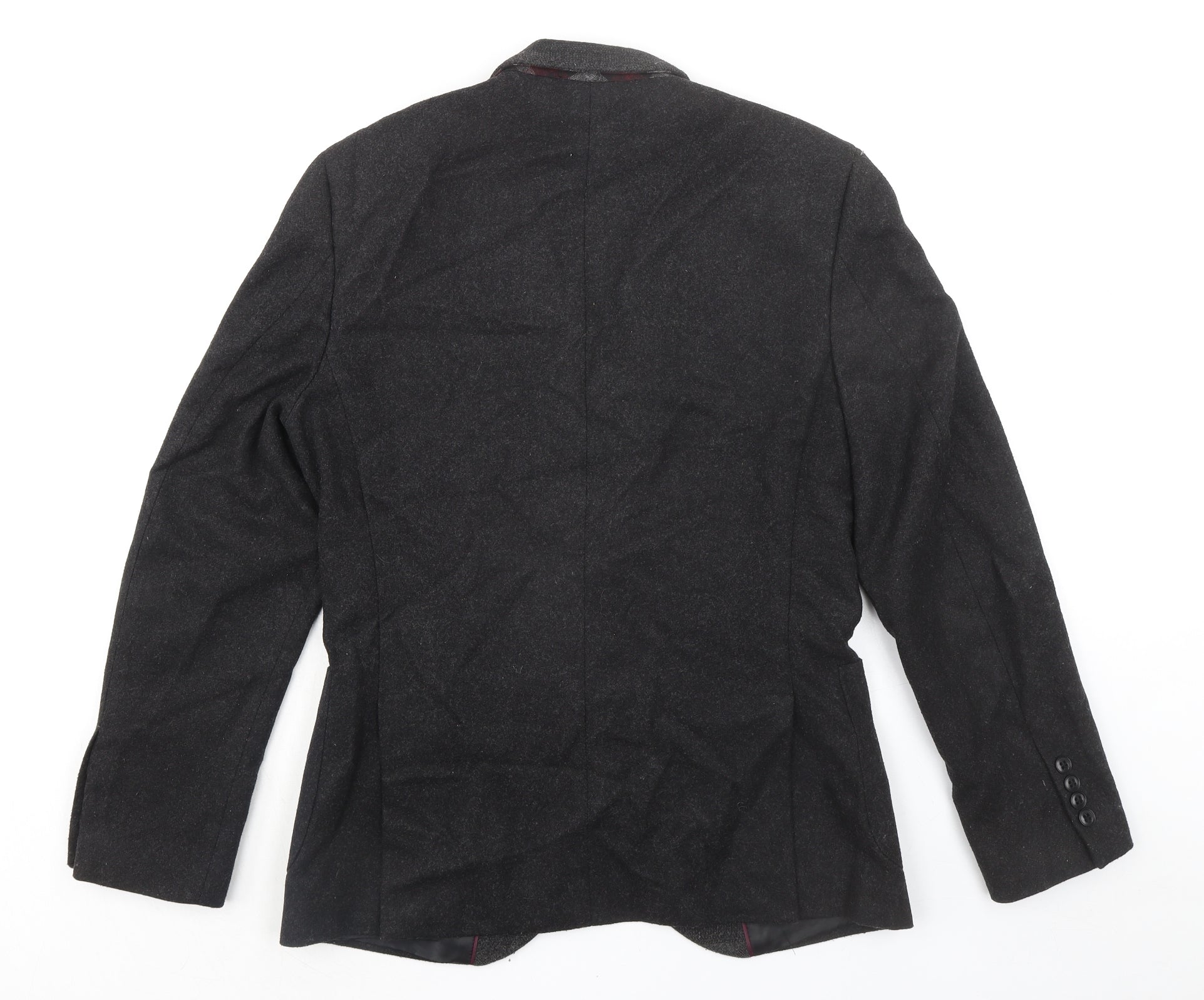 MOSS LONDON Mens Black Polyester Jacket Blazer Size 38 Regular
