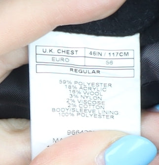 Moss London Men's Black Slim Fit Overcoat, Size 46R