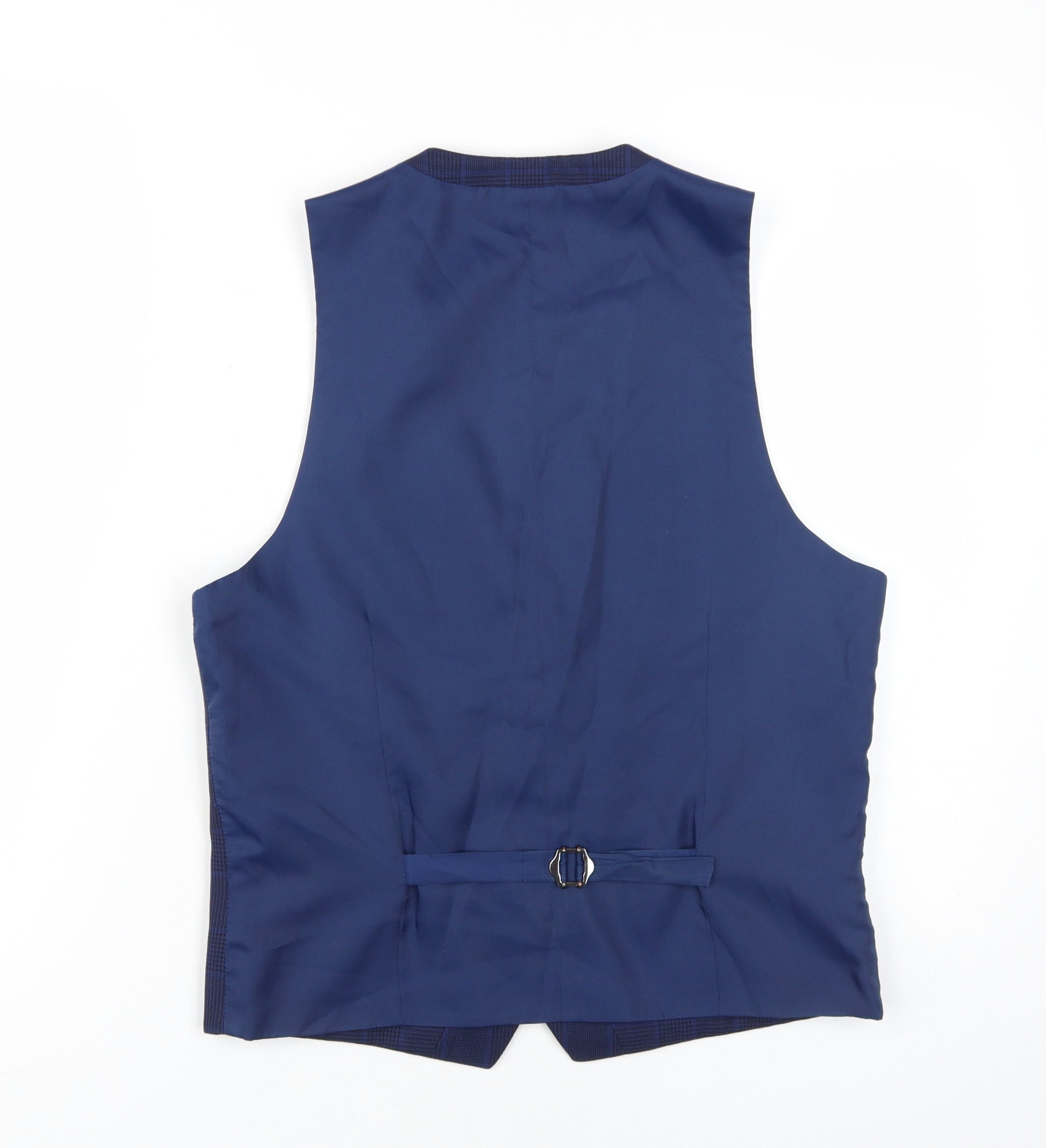 Moss London Men's Blue Checked Slim Fit Waistcoat 38R