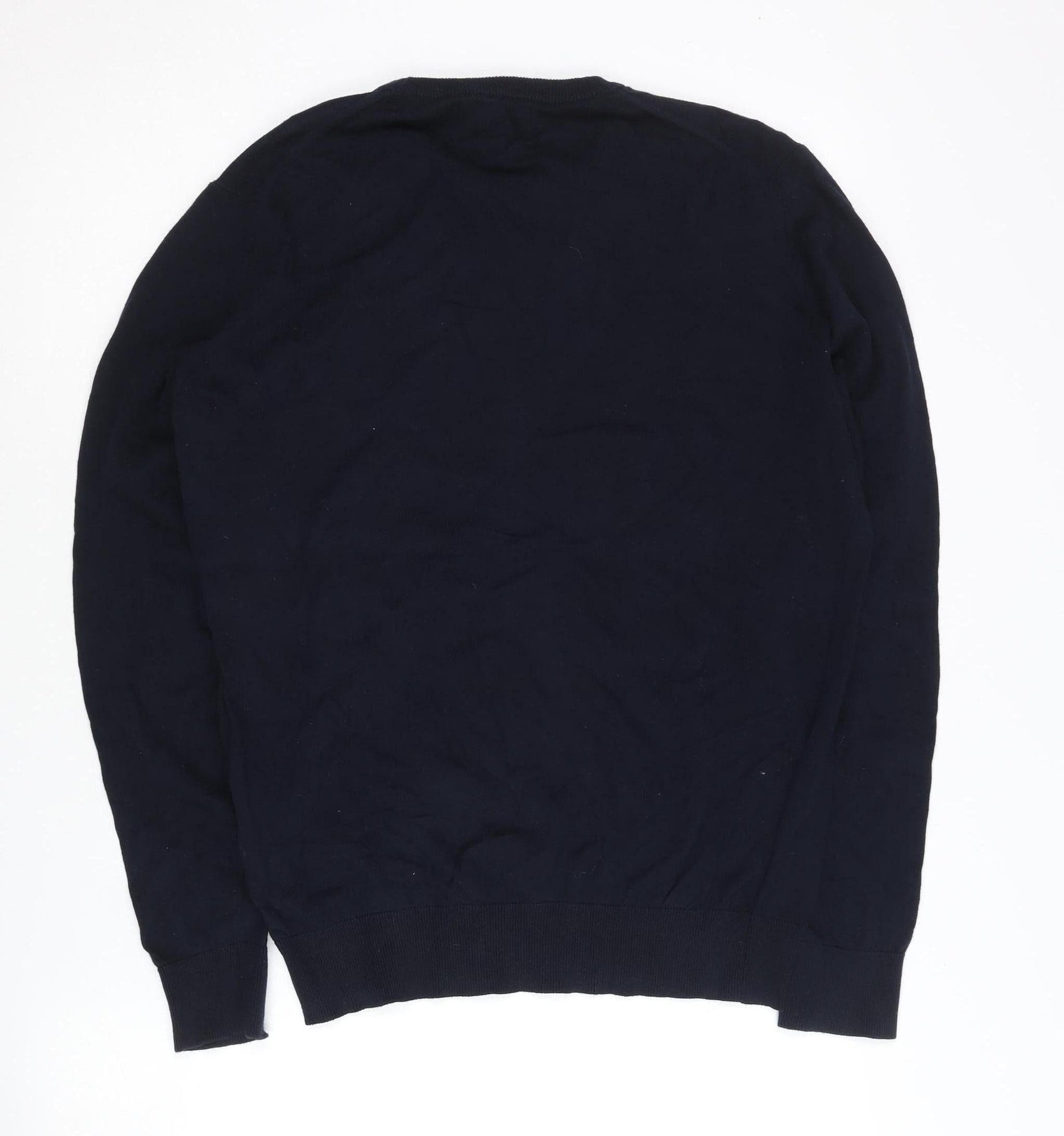 Moss London Men's Blue Cotton Slim Fit Crew Neck Jumper M