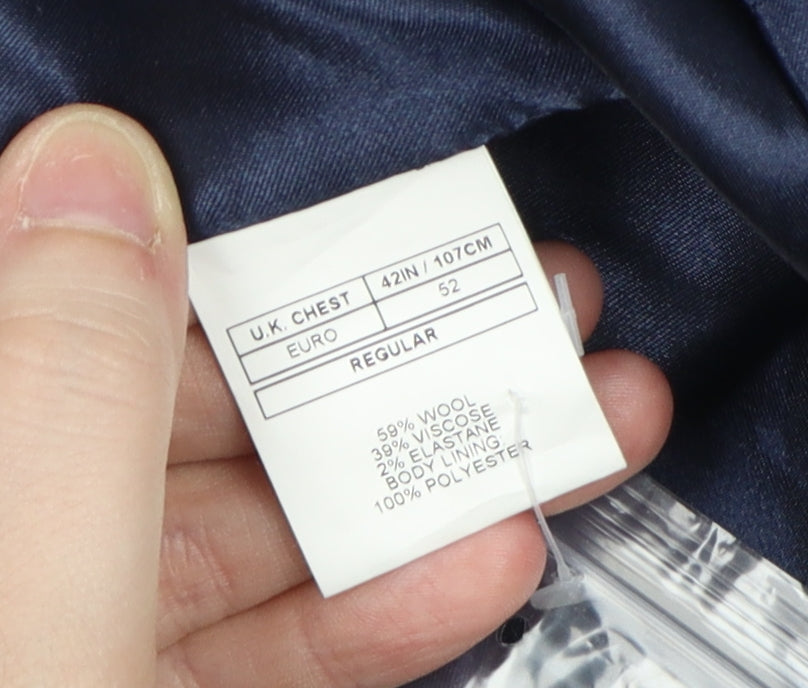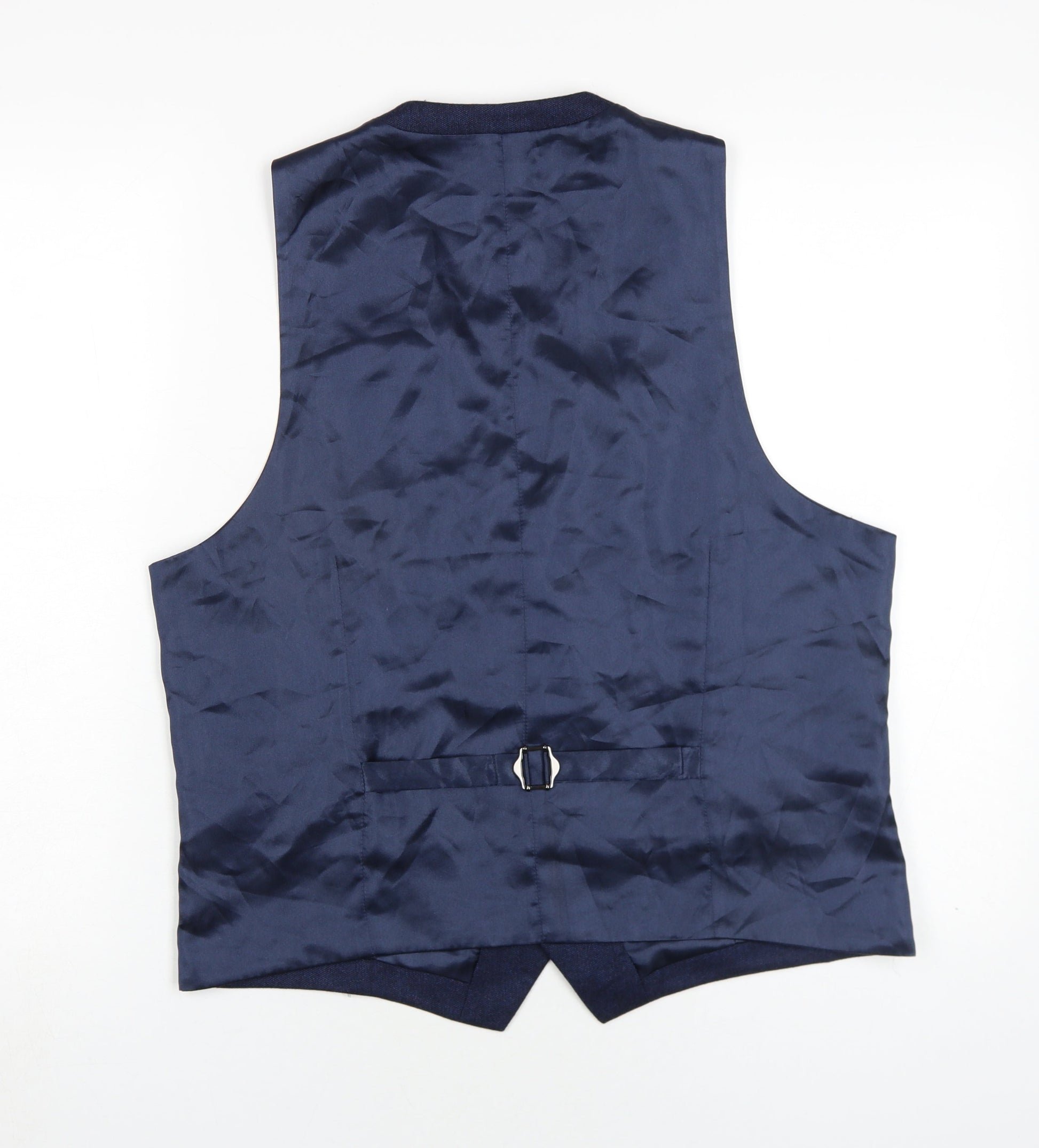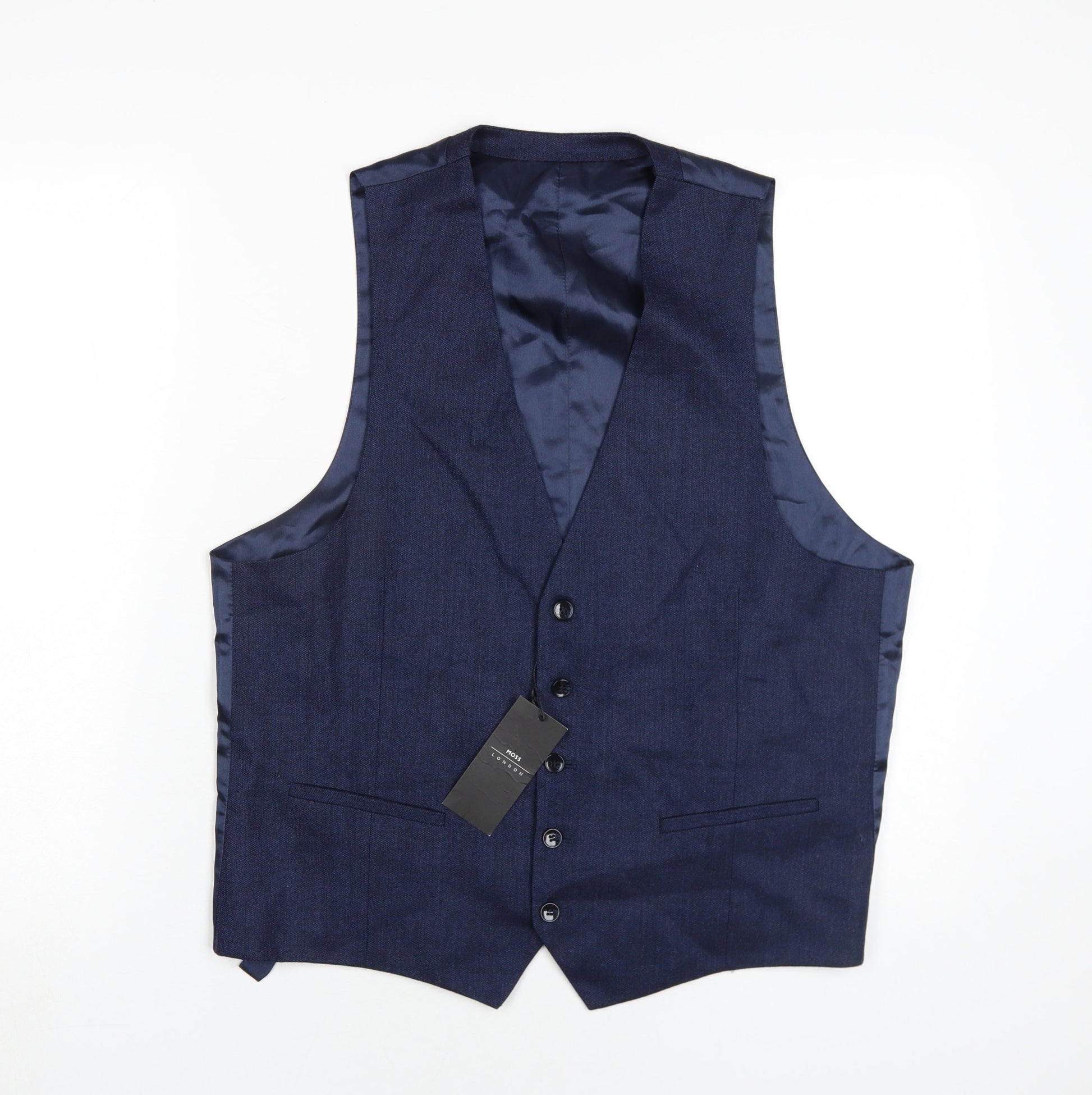 Moss London Men's Blue Suit Waistcoat, Size 42, Formal