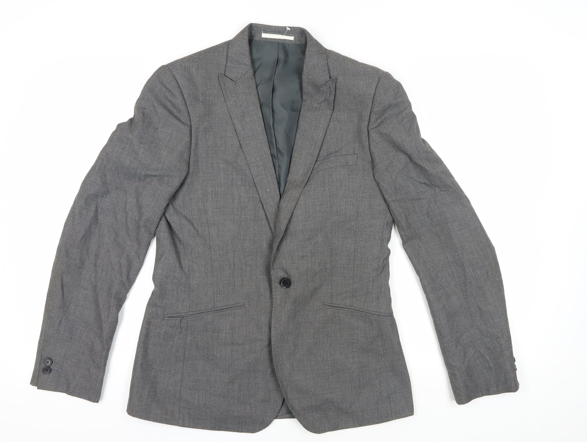 Moss London Men's Grey Blazer, Size 38, Long Fit