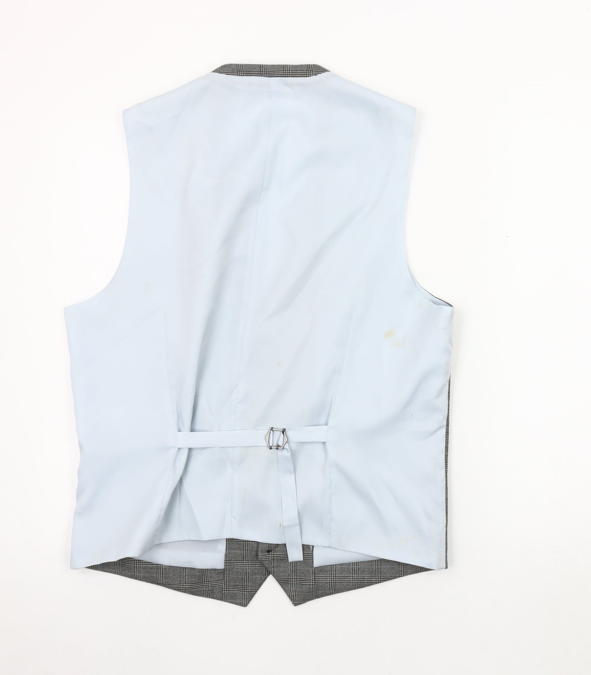 Moss London Men's Grey Check Waistcoat Size 42L Formal
