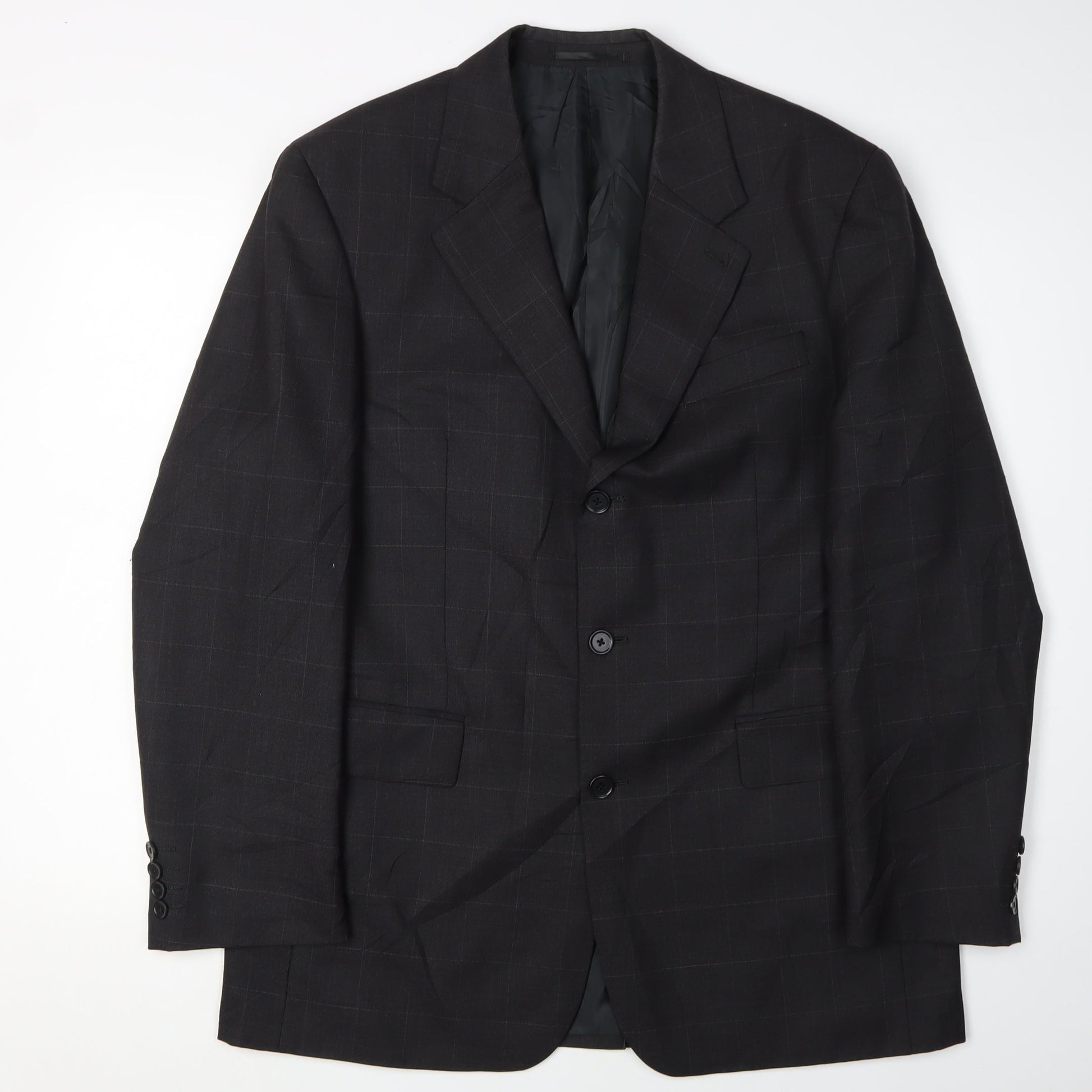 Moss Men's Black Plaid Suit Jacket 40R Regular Fit