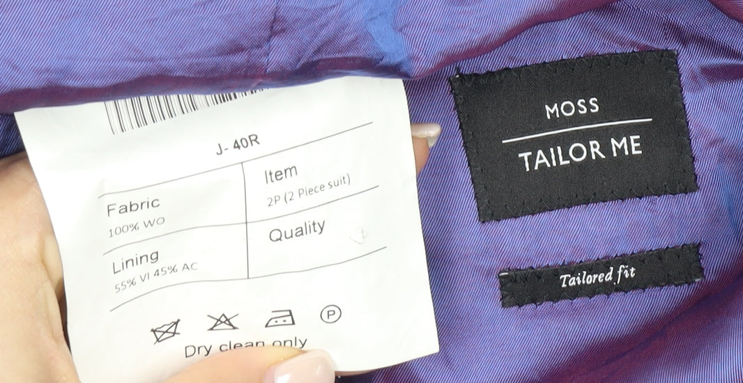 Moss Men's Grey Check Slim Fit Suit, Size 40R