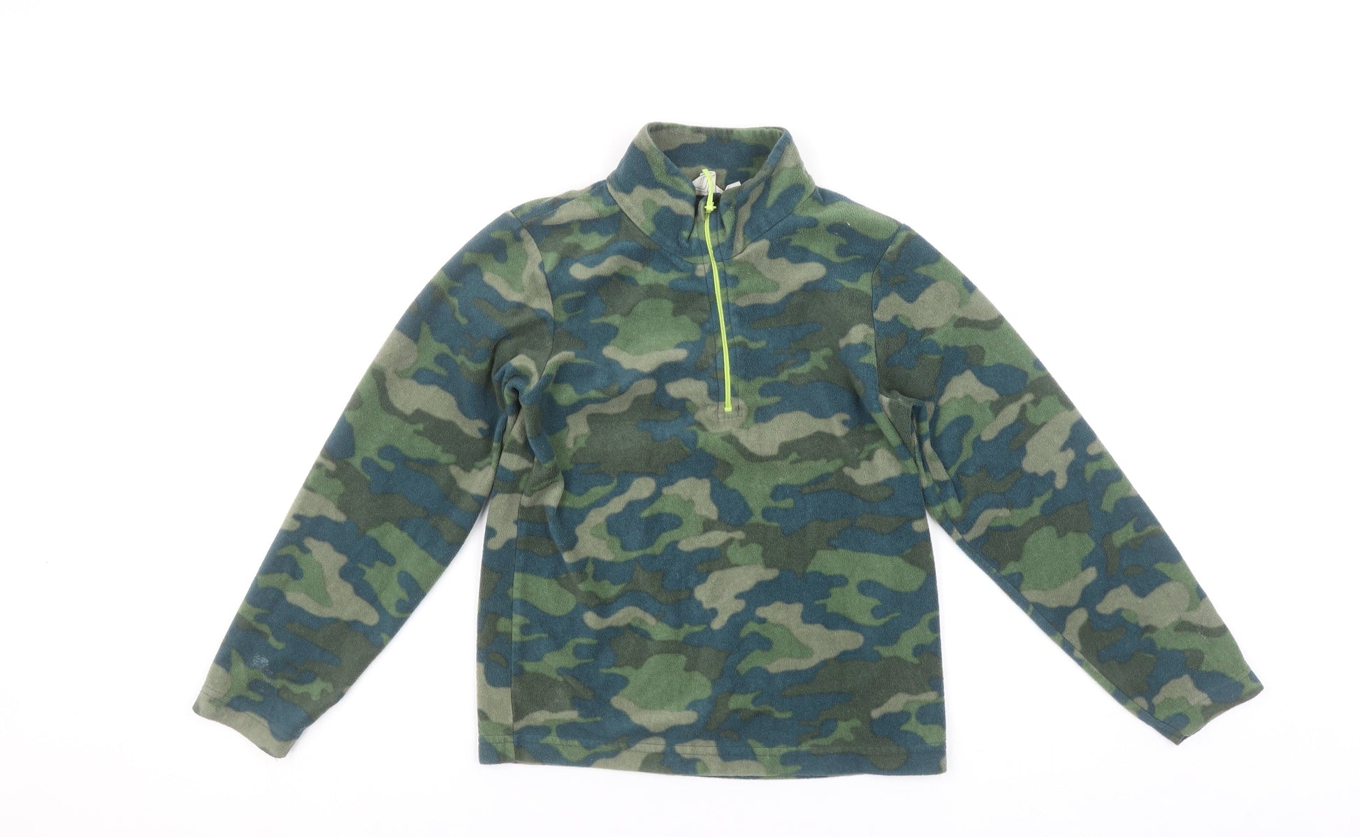 Mountain Warehouse Boys Green Camouflage Fleece 1/4 Zip Pullover Sweatshirt 9-10 Years