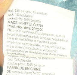 - Outer Shell Material: Polyester Blend