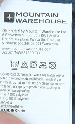 Mountain Warehouse Men's Blue Windbreaker Jacket S