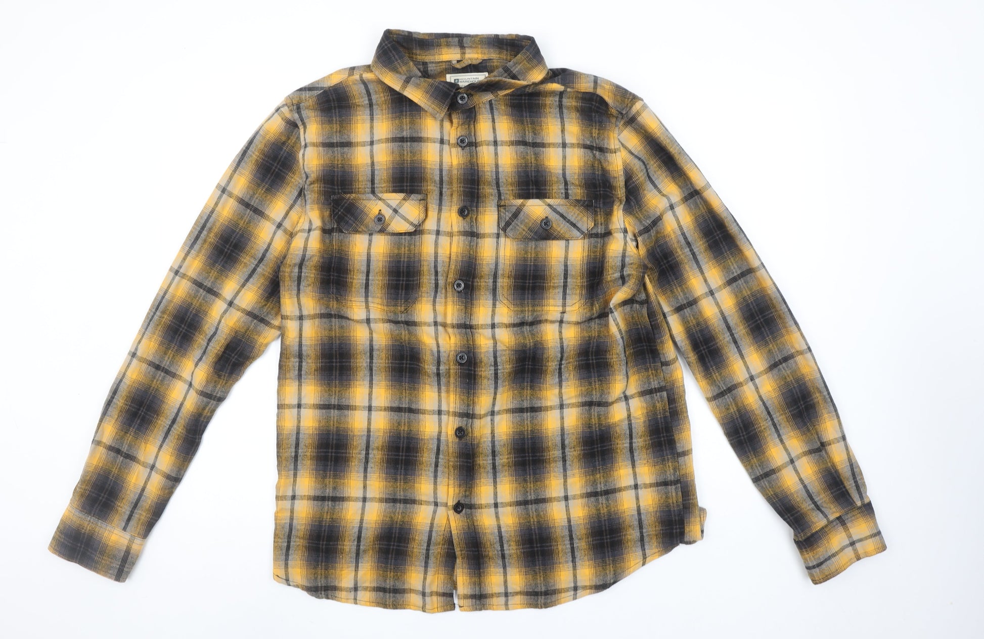 Mountain Warehouse Men's Yellow Plaid Flannel Long Sleeve Button-Up Shirt L