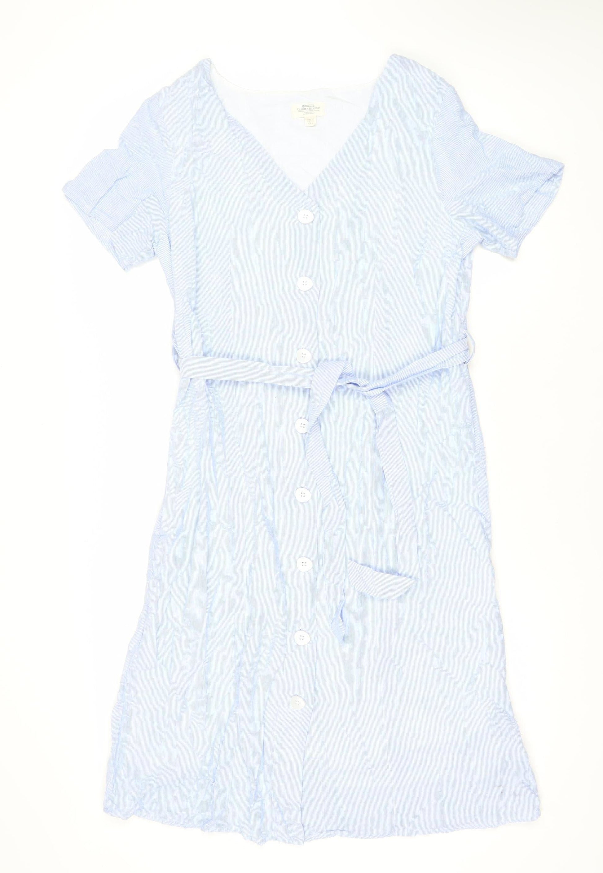 Mountain Warehouse Women Blue Size 10 Linen Cotton Belted Shirt Dress
