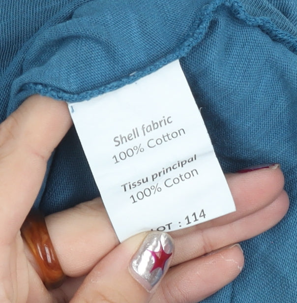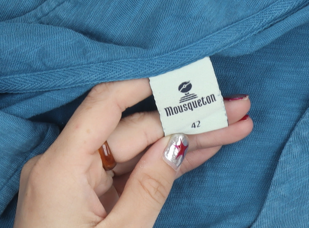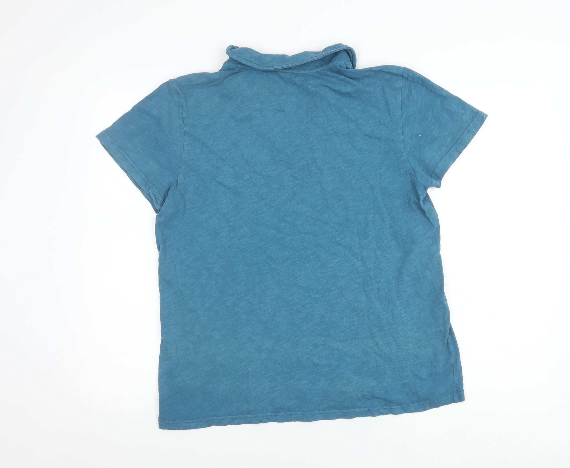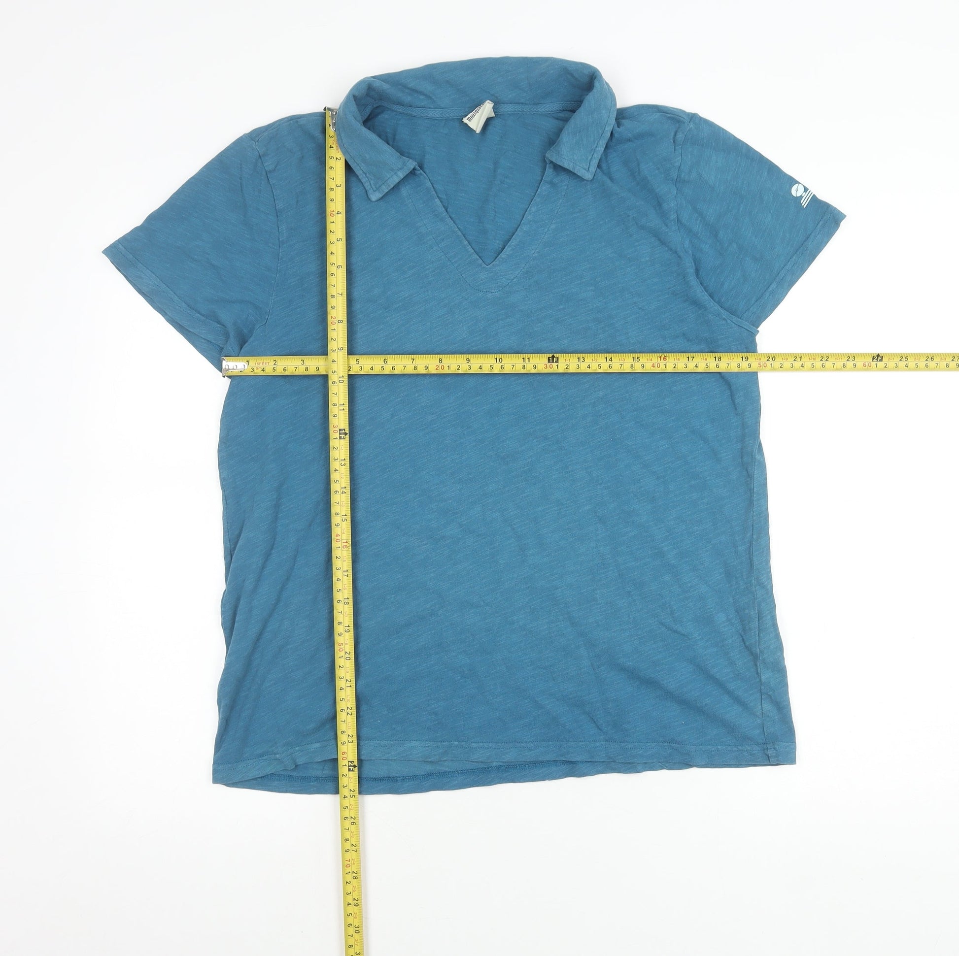 Mousqueton Womens Blue Cotton Collared V-Neck T-Shirt Size 14