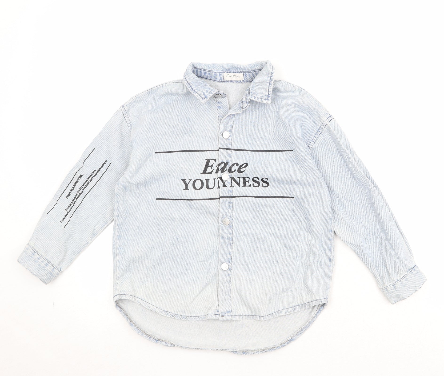 MW Kids Boys Blue Paisley Cotton Basic Button-Up Size 11 Years Collared Button - Slogan
