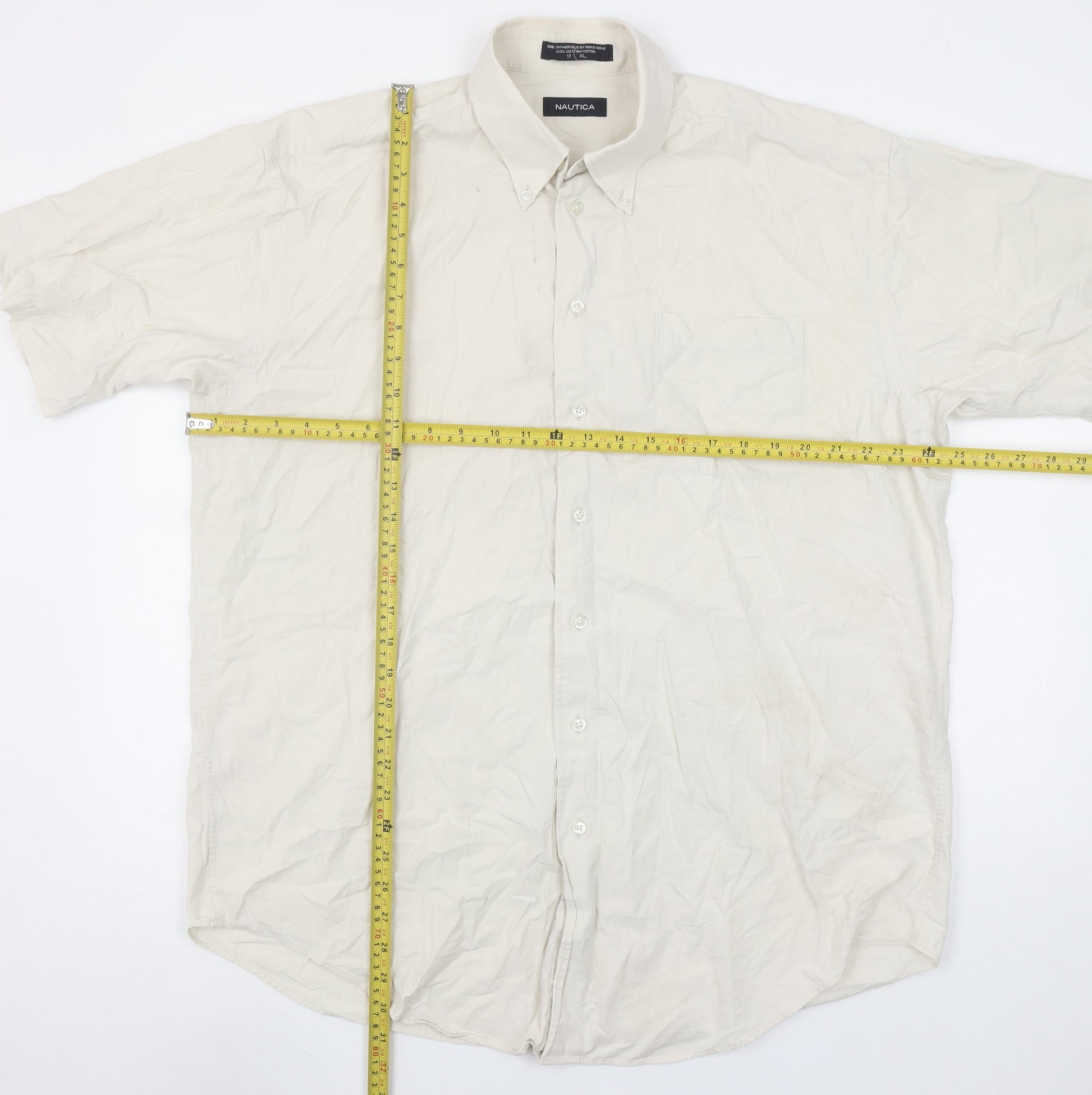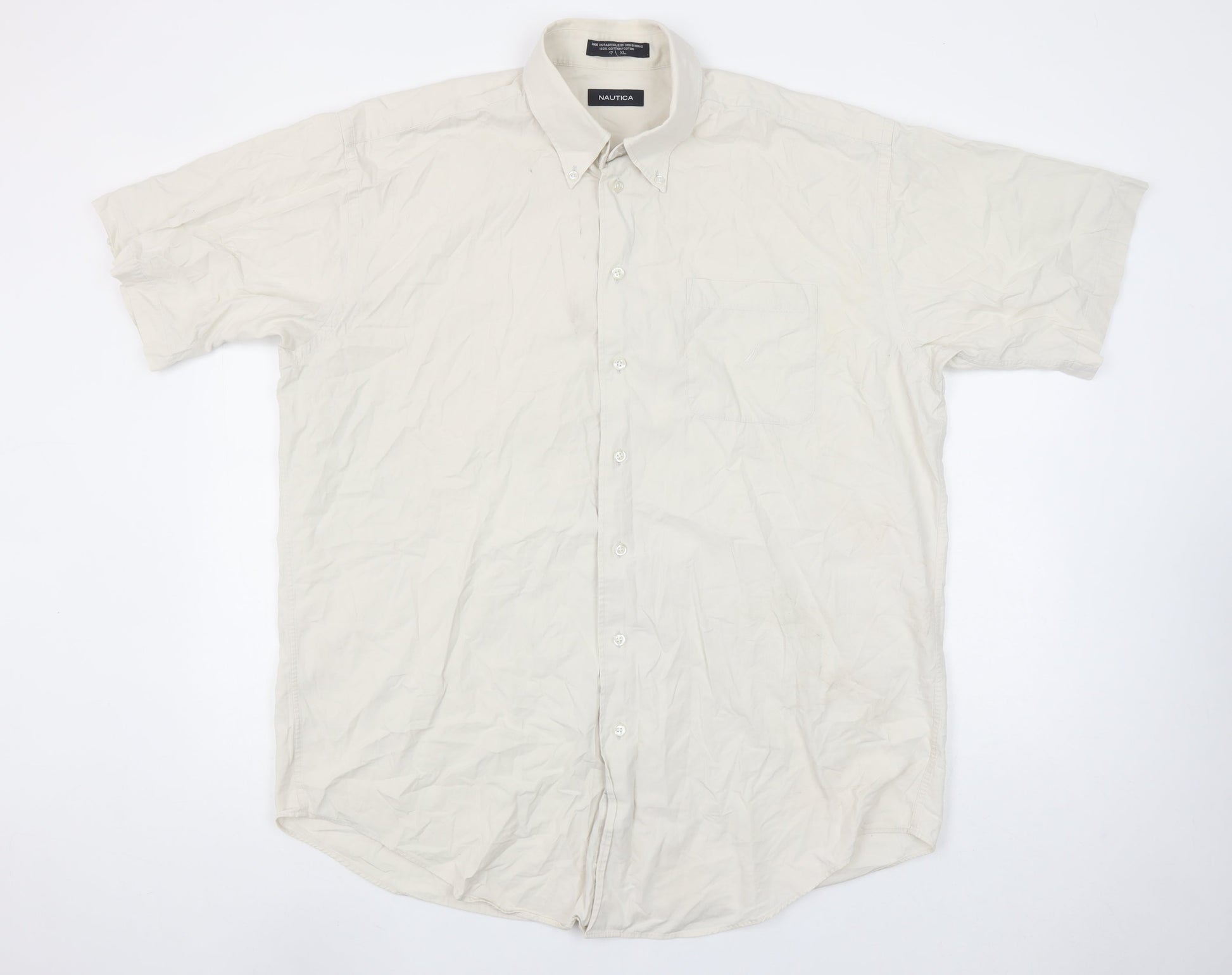Nautica Men’s Beige Short Sleeve Button-Down Cotton Shirt XL